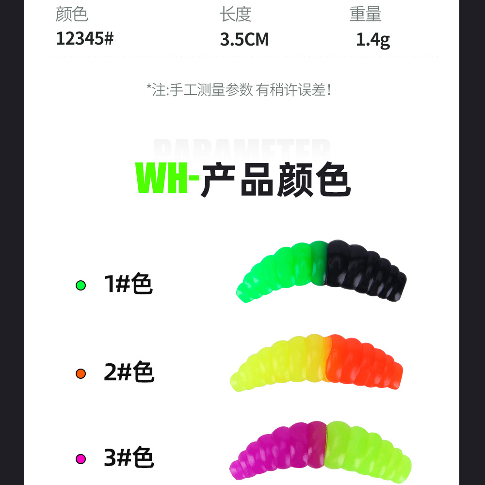 Спортивные приманки Weihe, большие двухцветные черви, 20 шт. в упаковке, 3,5 см, 1,4 г, материал ПВХ, мягкая приманка, кросс-бордер.