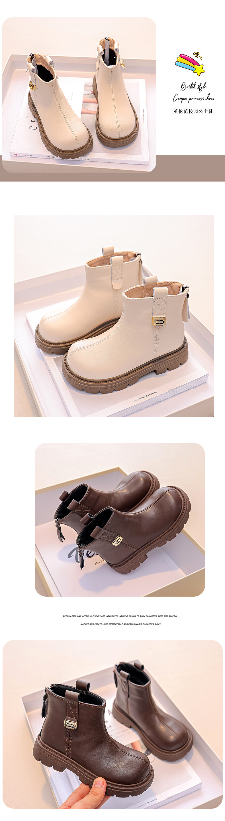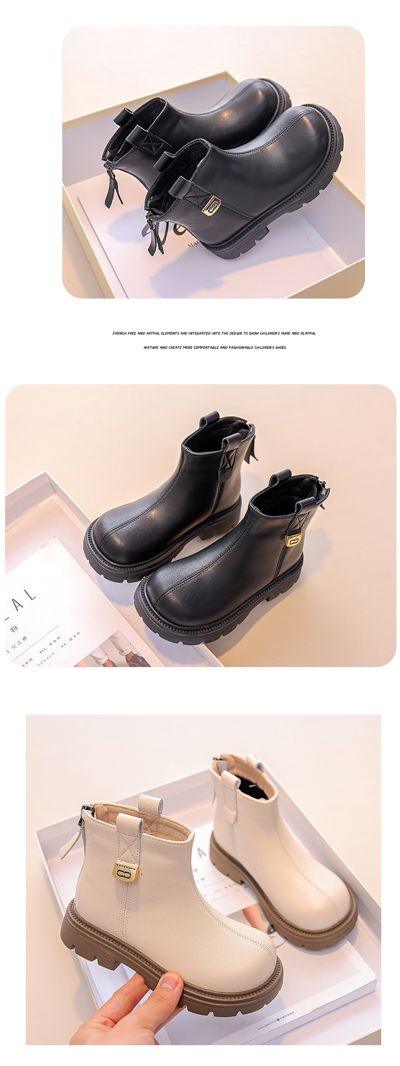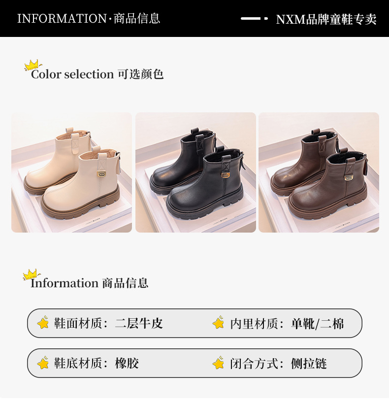 Подарки для девочек Martin сапоги для детей кожаные короткие сапоги 2024 новый ребенок осень-зима простая зимняя хлопковая обувь
