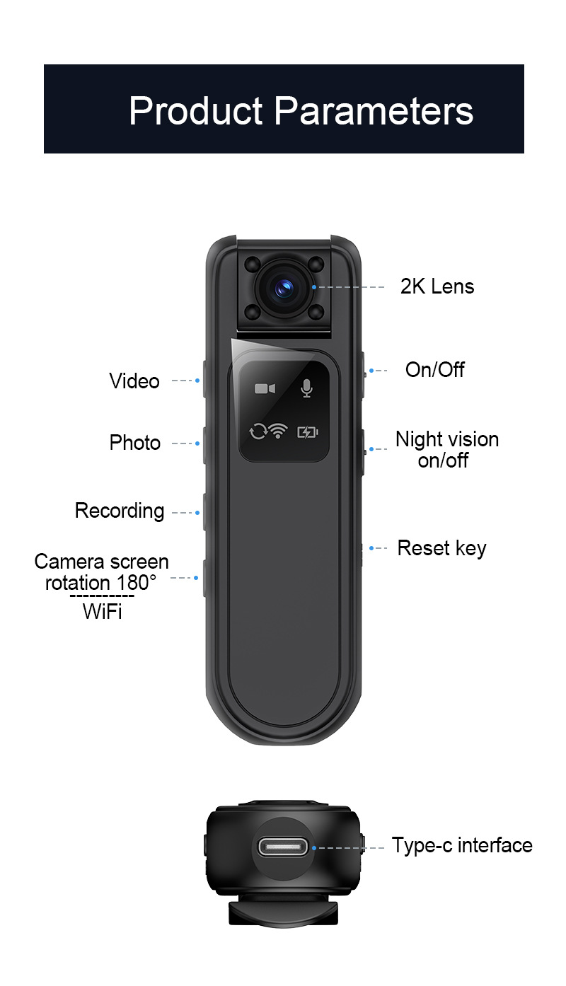 Трансграничный HD 2K камера WiFi ночного видения электромобиль мотоцикл рекордер портативный задний зажим наружная камера