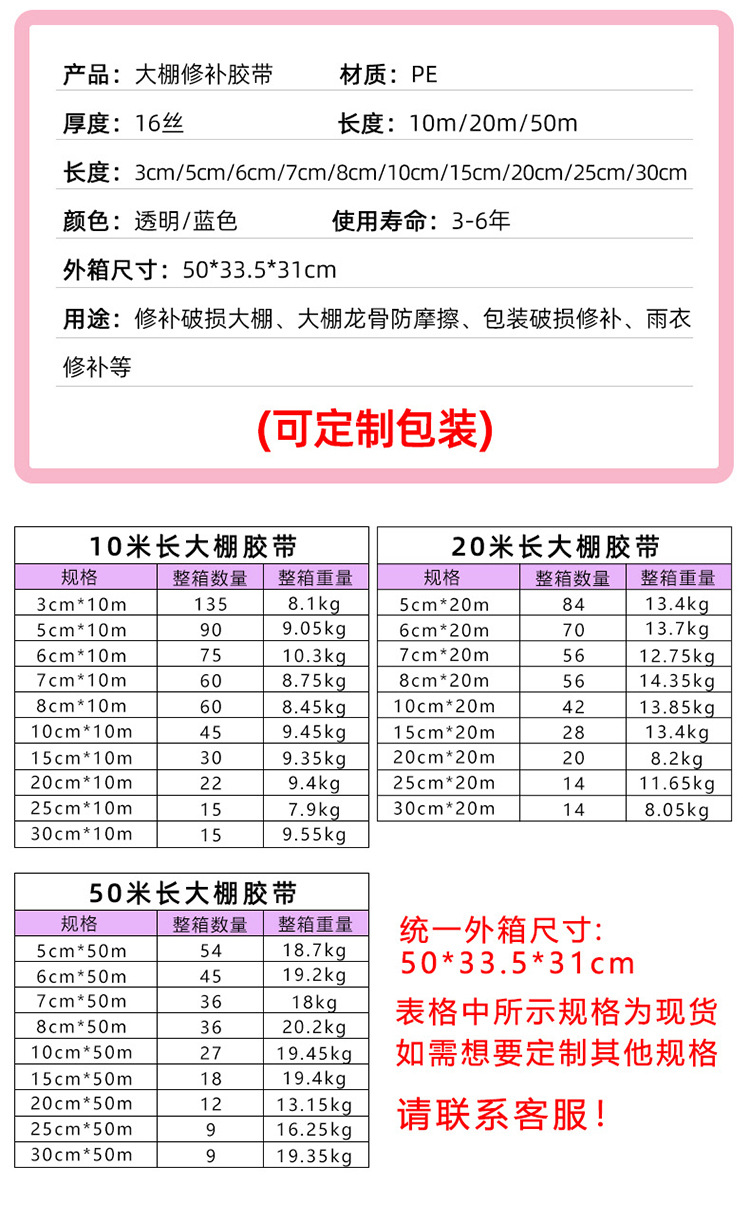 Специальная ремонтная лента для сельскохозяйственных теплиц, прочный клей, утолщенная водонепроницаемая, устойчивая к старению, полиэтиленовая лента для теплиц с высокой вязкостью.