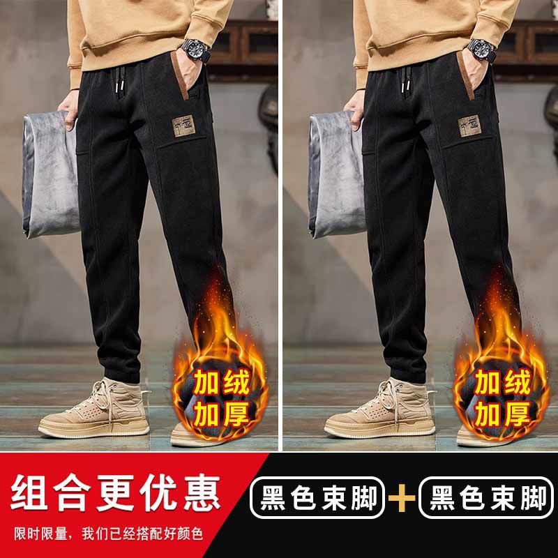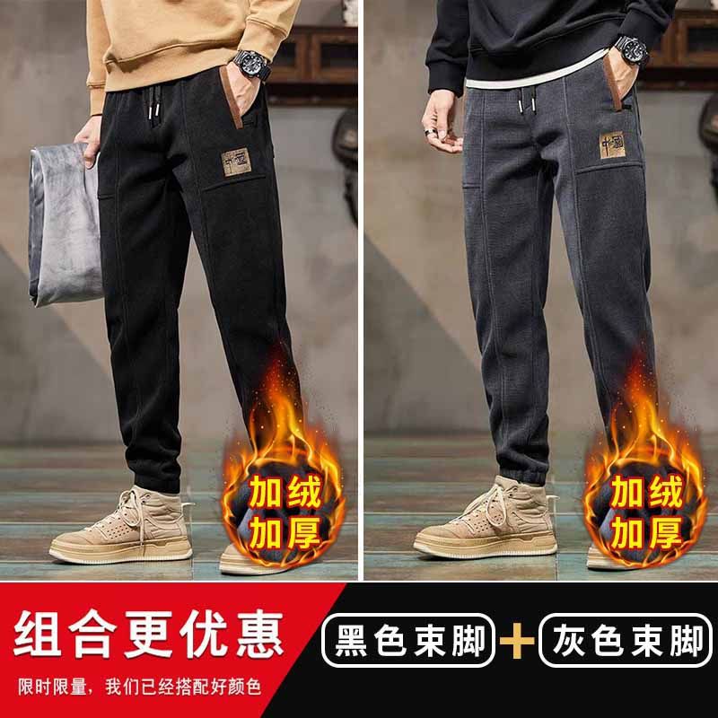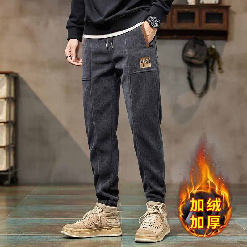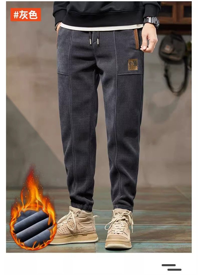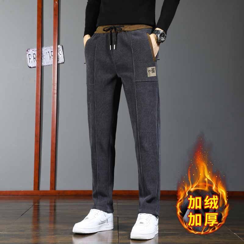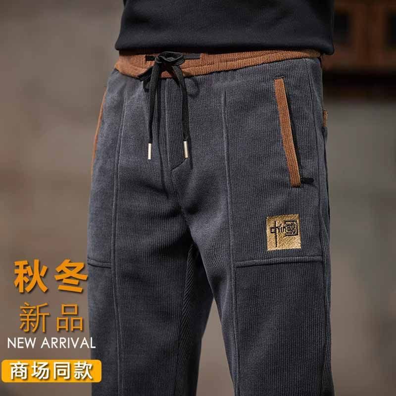 Бархатные брюки Boao, мужские свободные брюки на флисовой подкладке, повседневные Модные утепленные вельветовые брюки в китайском стиле на осень и зиму
