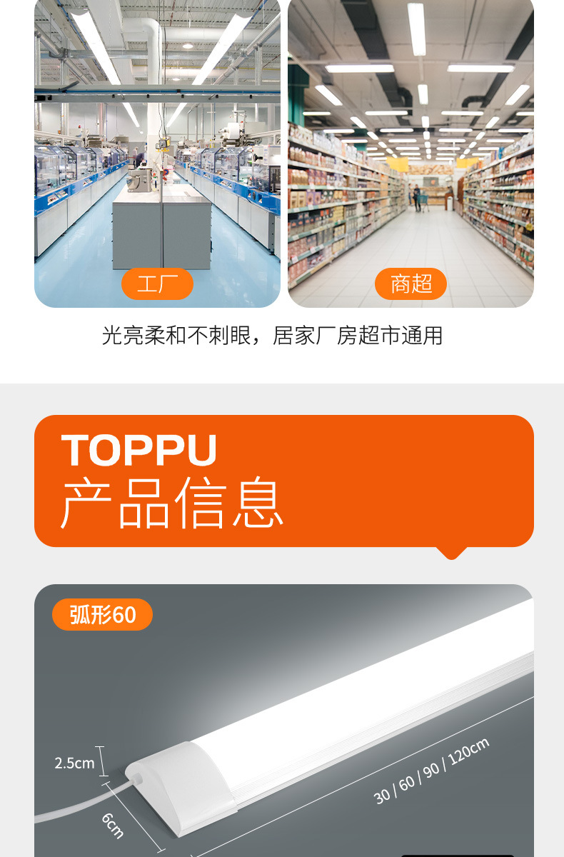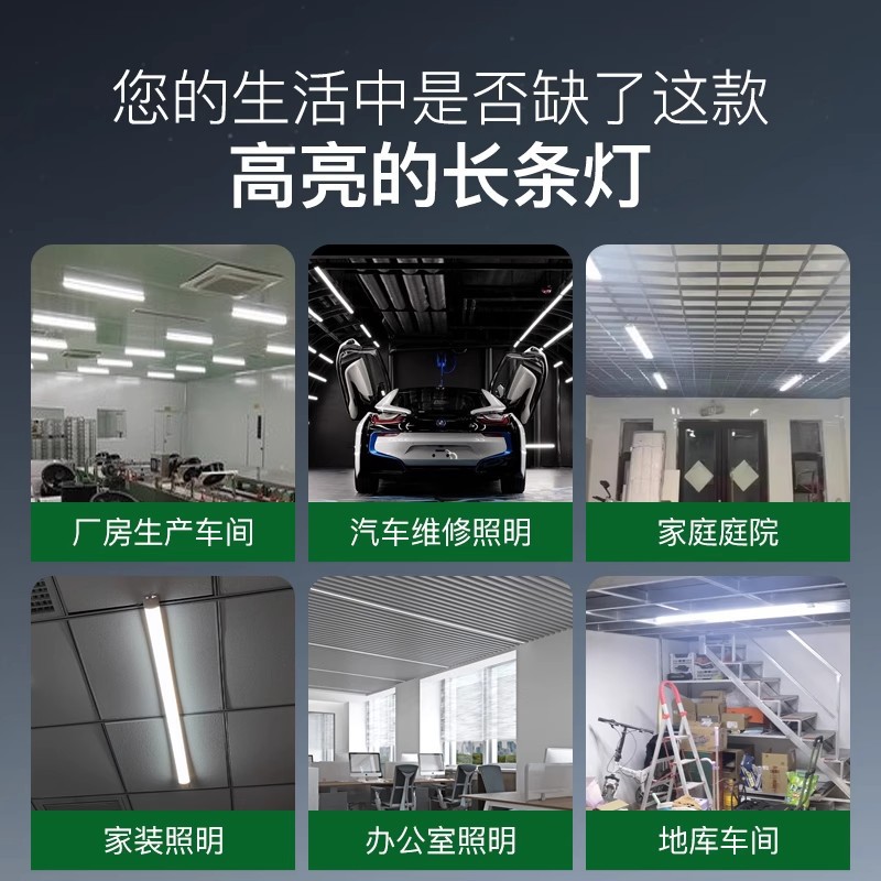 Трехстойкая Скоба для очистки, Светодиодная лента, длинная полоса, ультра-яркая интегрированная ультратонкая потолочная фабрика, освещение супермаркета
