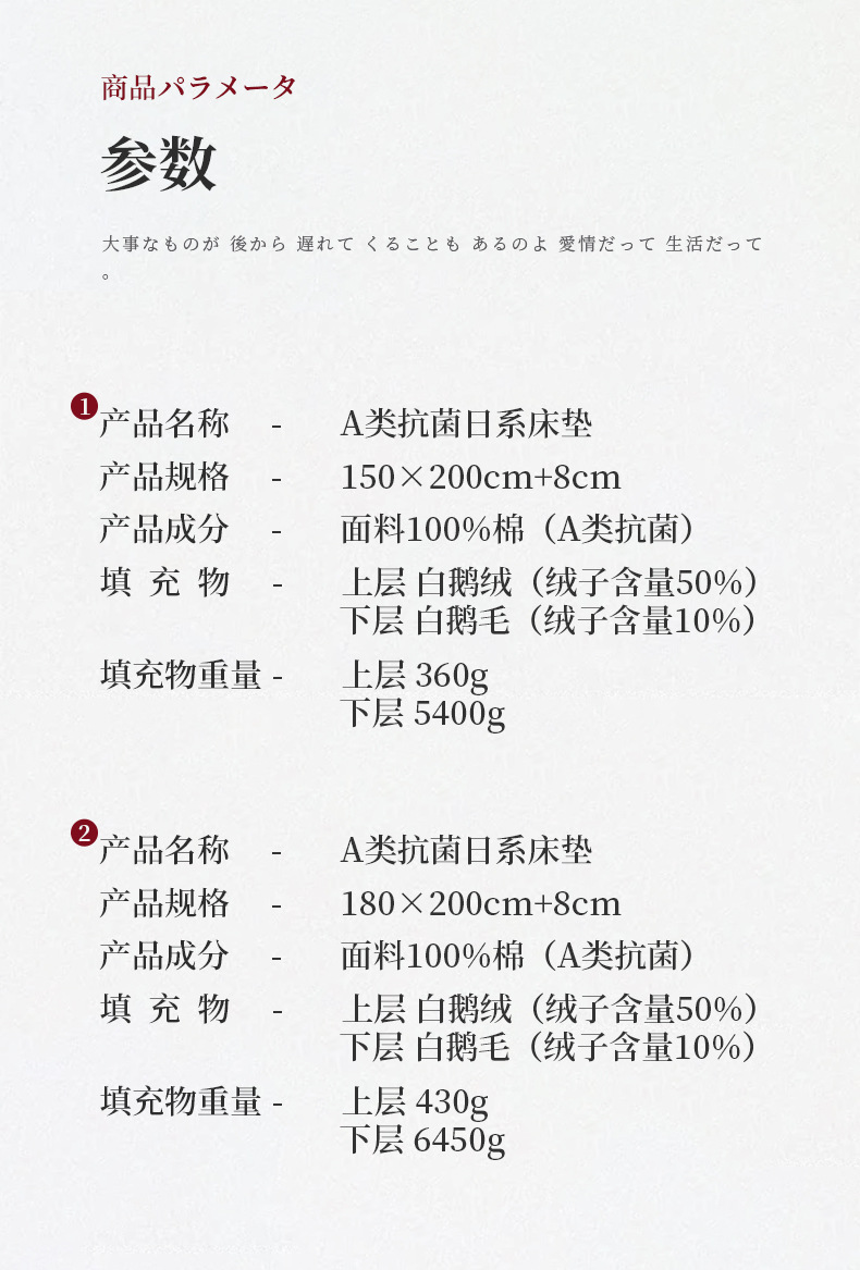 XISHE-Японский Антибактериальный двухслойный пуховый матрас типа A (матрас)