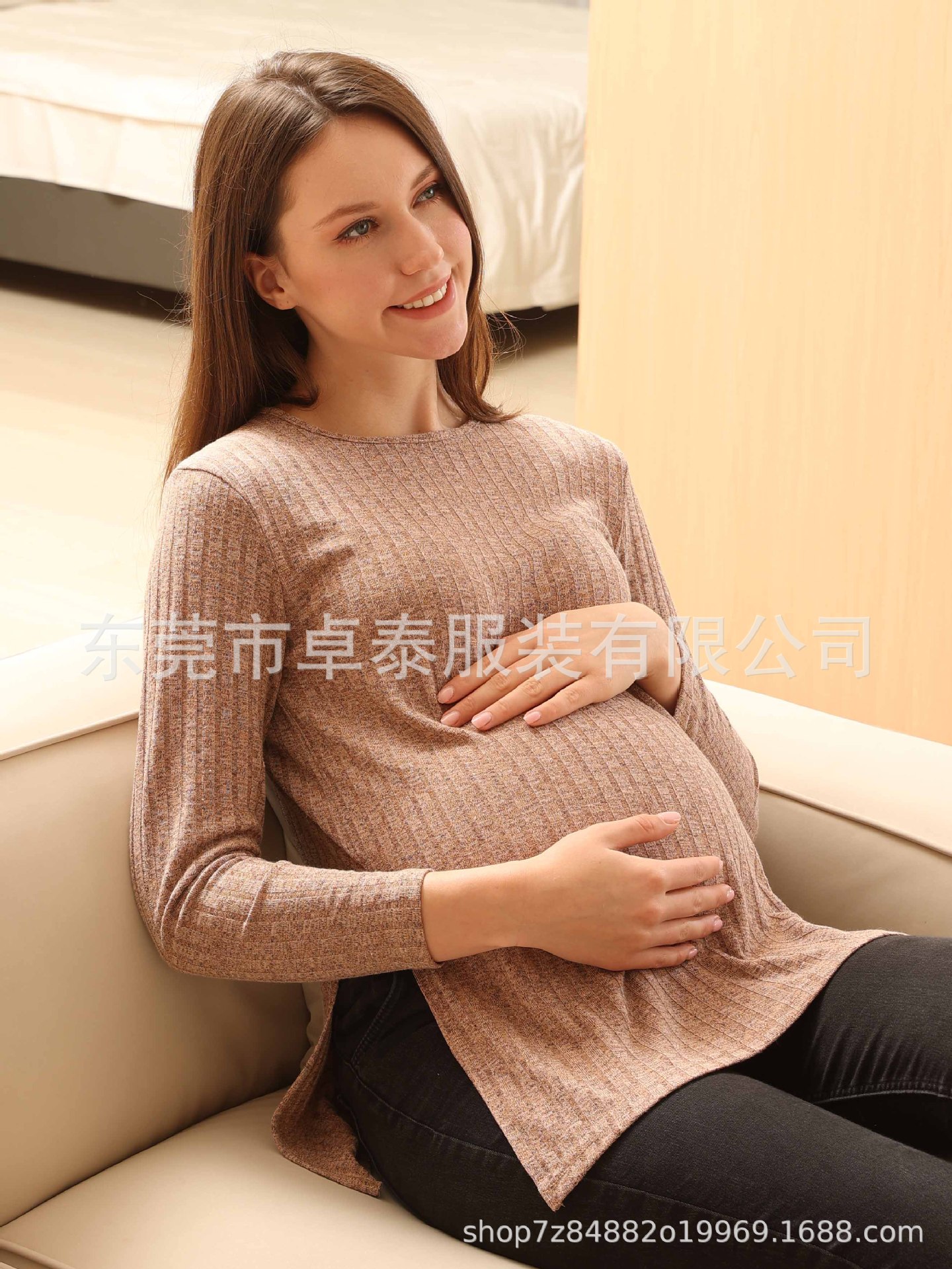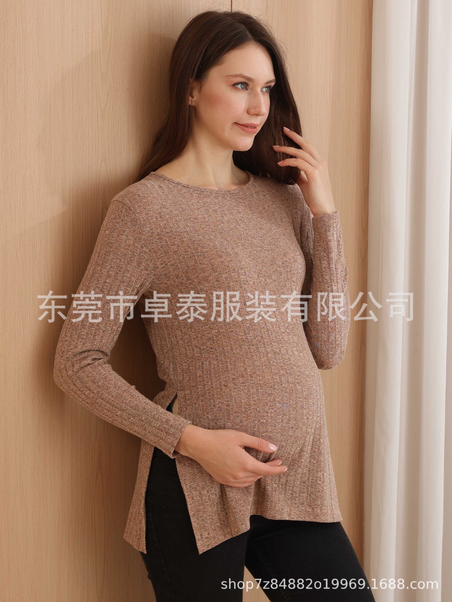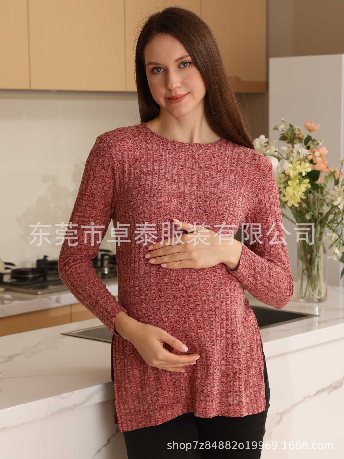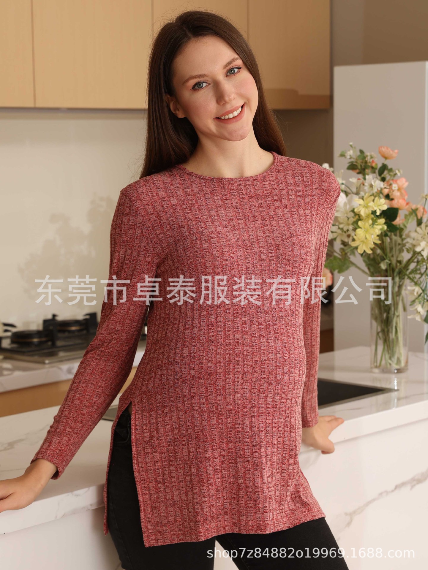 Cross-Border Factory Direct в наличии, поставка, новый Римский бархат, однотонный топ с круглым вырезом и длинными рукавами с разрезом для беременных женщин, нижняя рубашка, Топ