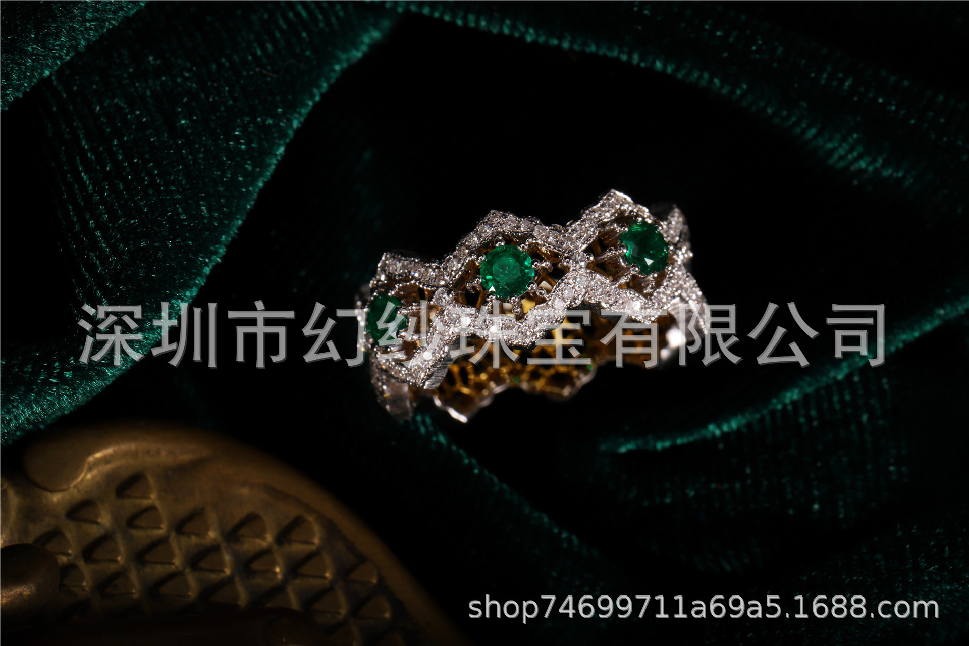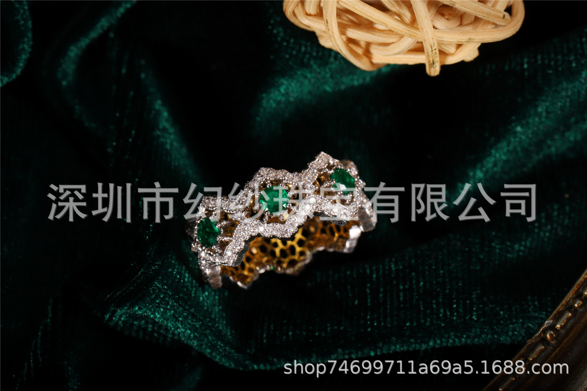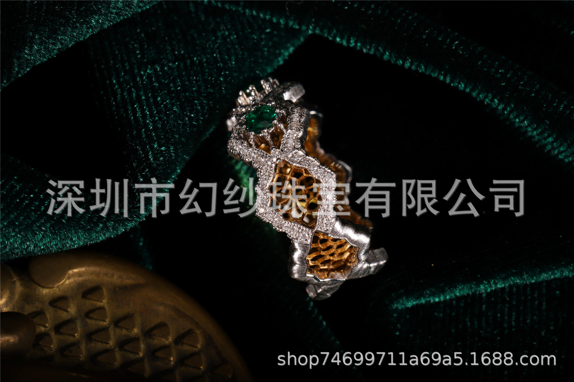 Текстурированные Золотые ремесла Италия 18K золото изумруд кольцо высокие ювелирные изделия дрожит поколение волос