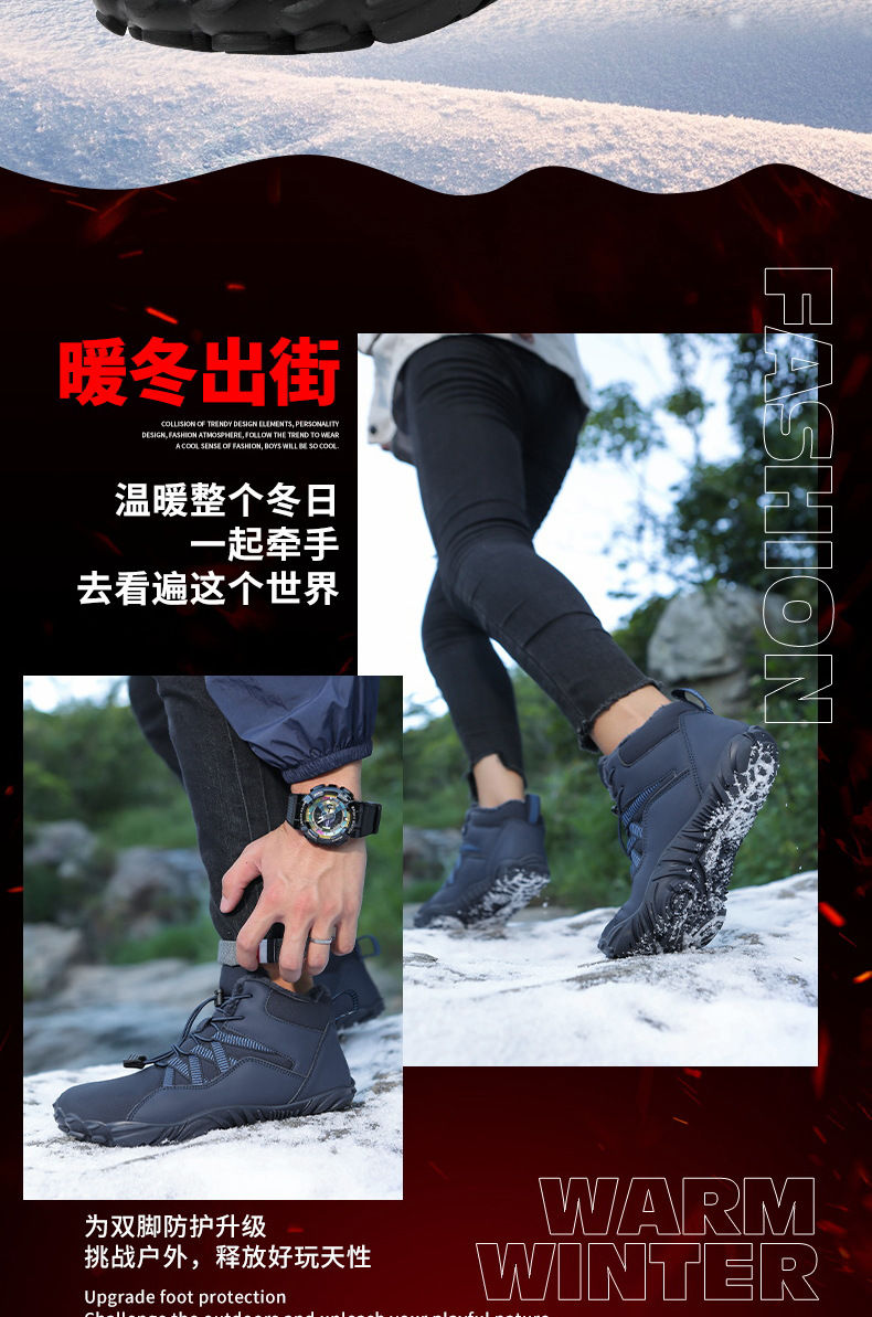 Фабрика прямых продаж трансграничные взрывные кроссовки плюс бархатные кроссовки мужские походные ботинки снегоступики пять пальцев хлопчатобумажные ботинки мужские нескользкие кроссовки
