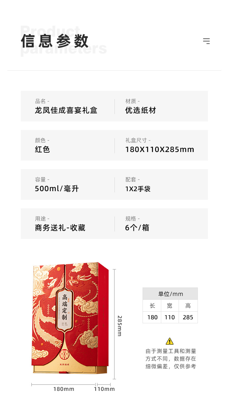 Коробка Longfeng Jiacheng, разовая доставка (без бутылки вина); Коробка Longfeng Jiacheng + бутылка белого вина, доставка в одном комплекте; Коробка Longfeng Jiacheng, 6 шт. в коробке, доставка в полной коробке (без бутылки вина); Коробка Longfeng Jiacheng + бутылка белого вина, 6 шт. в коробке, доставка в полной коробке