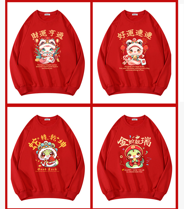 Удача [без бархата]; Без столов [без бархата]; Будьте богаты [без бархата]; Удачи 1 [без бархата]; Удачи 2 [без бархата]; Заготовьте деньги [без бархата]; Хорошие вещи арахис [без бархата]; Удачи [без бархата]; Благословения Golden Snake [без бархата]; Golden Snake Guanrui [без бархата]; Кий с телом [без бархата]; Spirit Snake Good Luck [без флисовой подкладки]; Более чем достаточно каждый год [без бархата]; Мир и радость [без бархата]; Флаг выигрывает 1 [без бархата]; Флаг выигрывает 2 [без бархата]; Ежедневное золото [без бархата]; Удачи в год змеи 1 [без бархата]; Удачи в год Смеи 2 [без бархата]; Удачи в год змеи 3 [без бархата]; Змея превращается в Qiankun [без бархата]; Все подходит [без бархата]; Новая начальная точка, новый кроссовер [без бархата]; Победите будущее [без бархата]; Открытие красного [без бархата]; Круглый вырез [оксамитовый стиль]; Пуловер с капюшоном [без бархата]; Пуловер с капюшоном [плюс бархат]; Толстовка с заниженными плечами