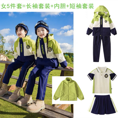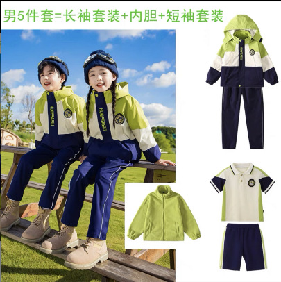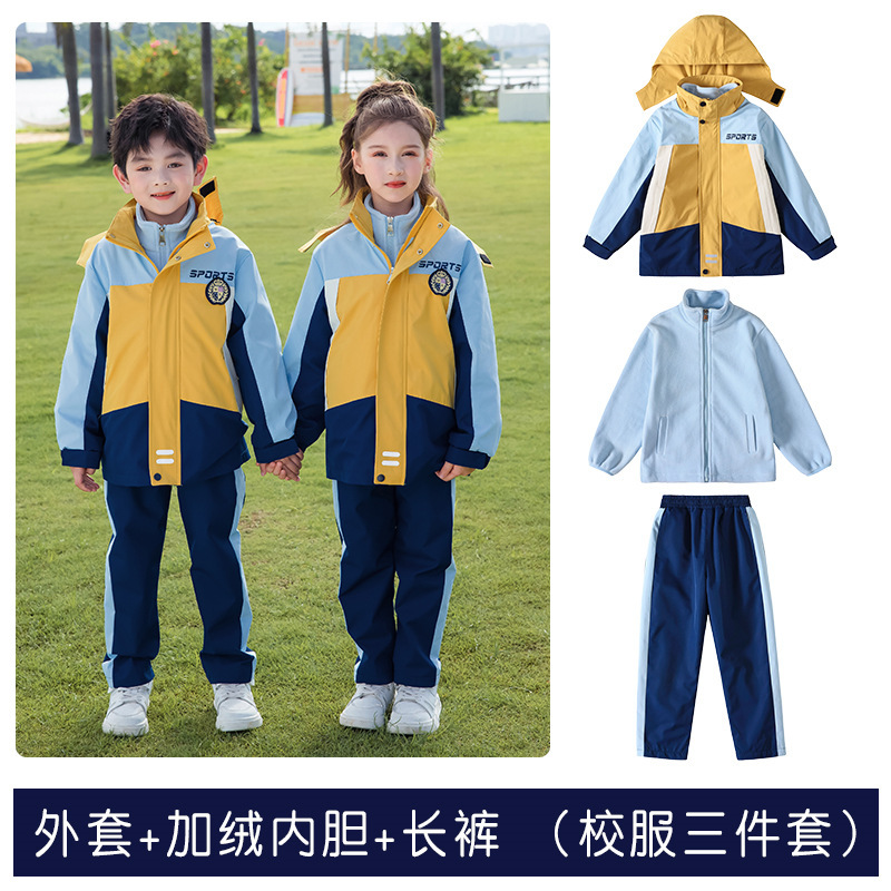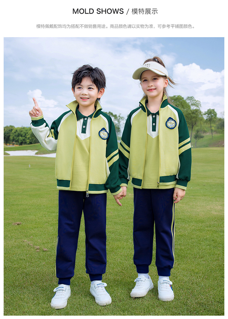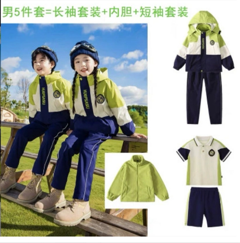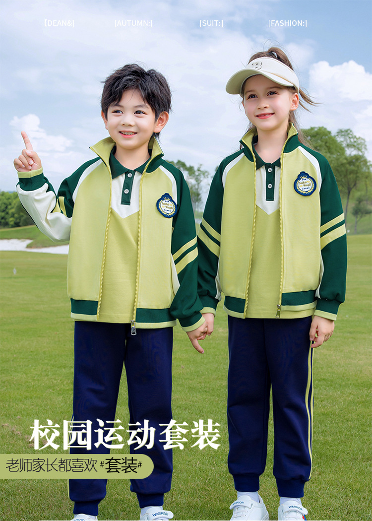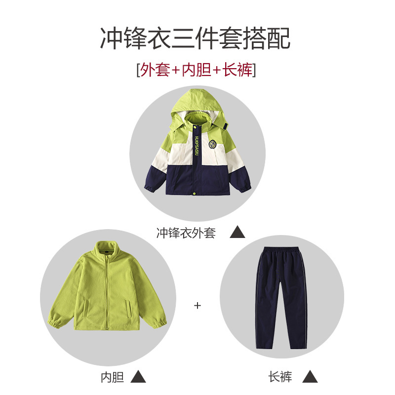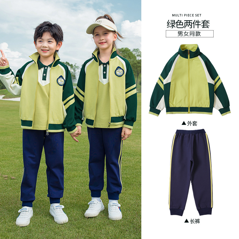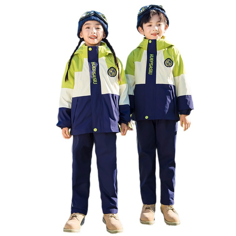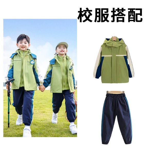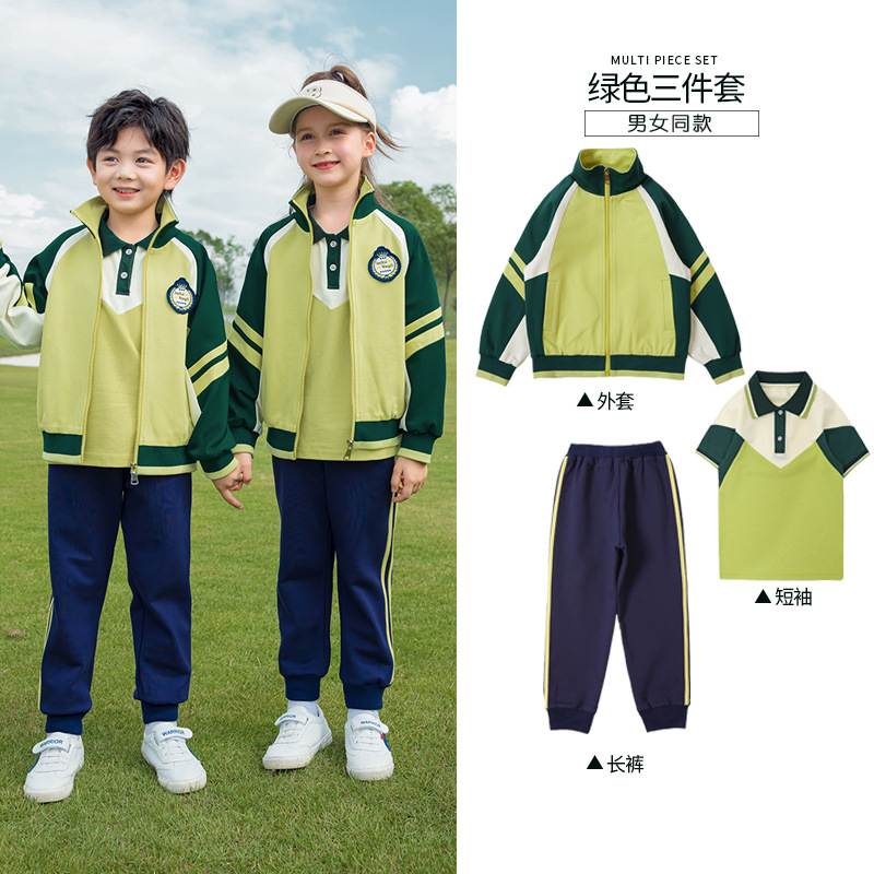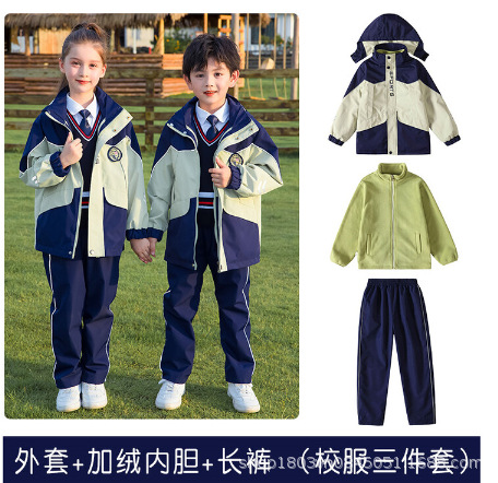 Костюм школьной формы Спешная одежда Комплект из трех предметов Одежда для учеников начальной школы Осенне-зимняя зеленая одежда для детского сада и сада Детская теплая одежда