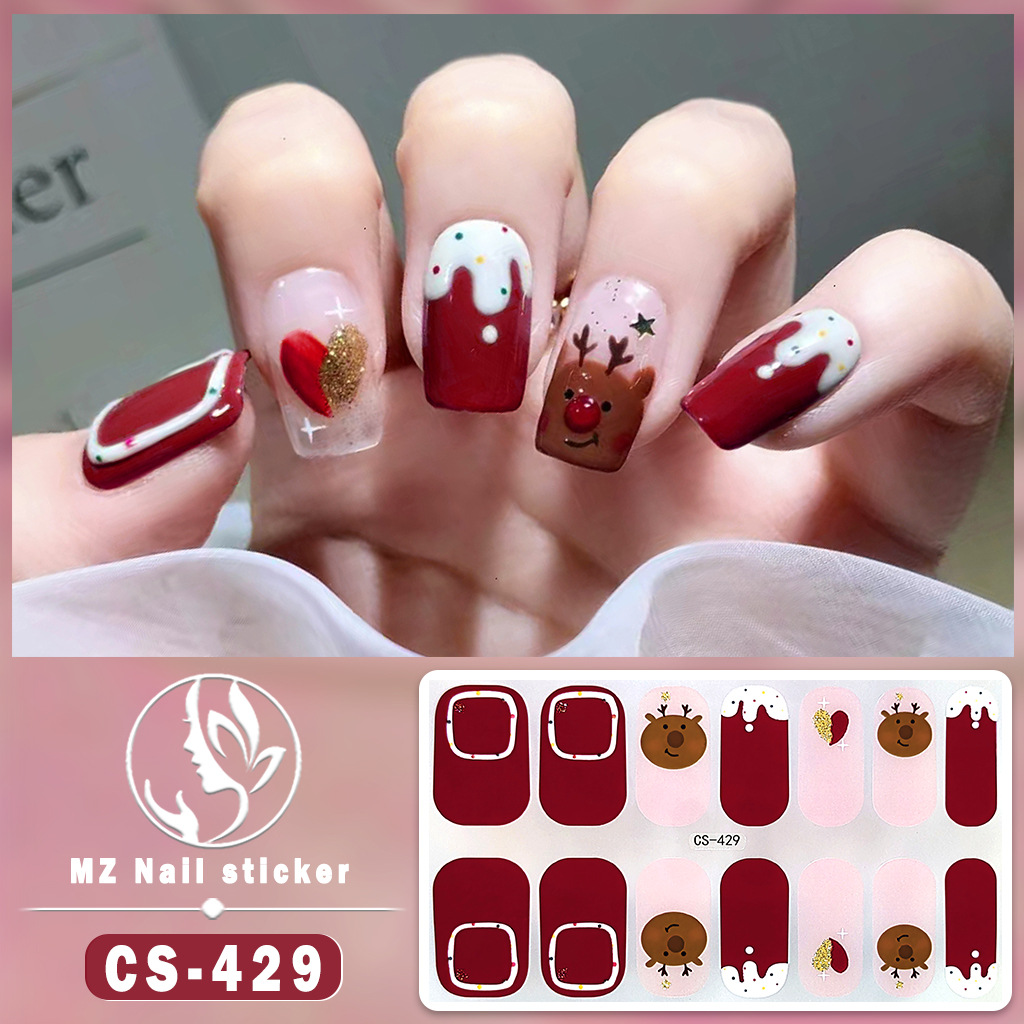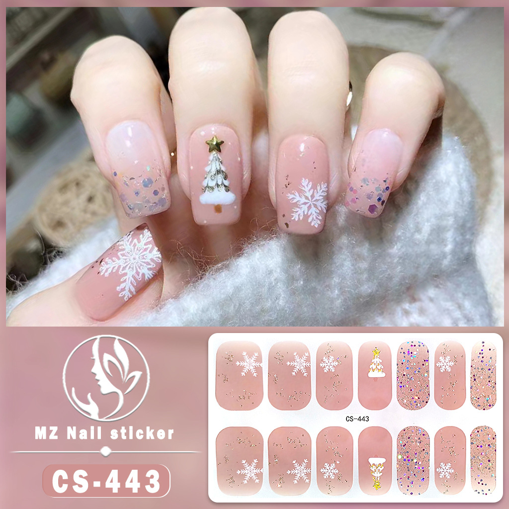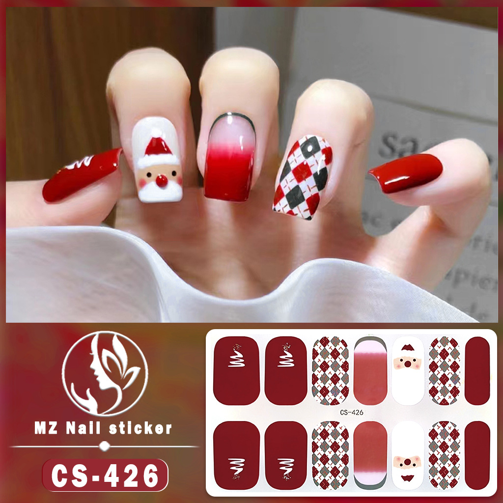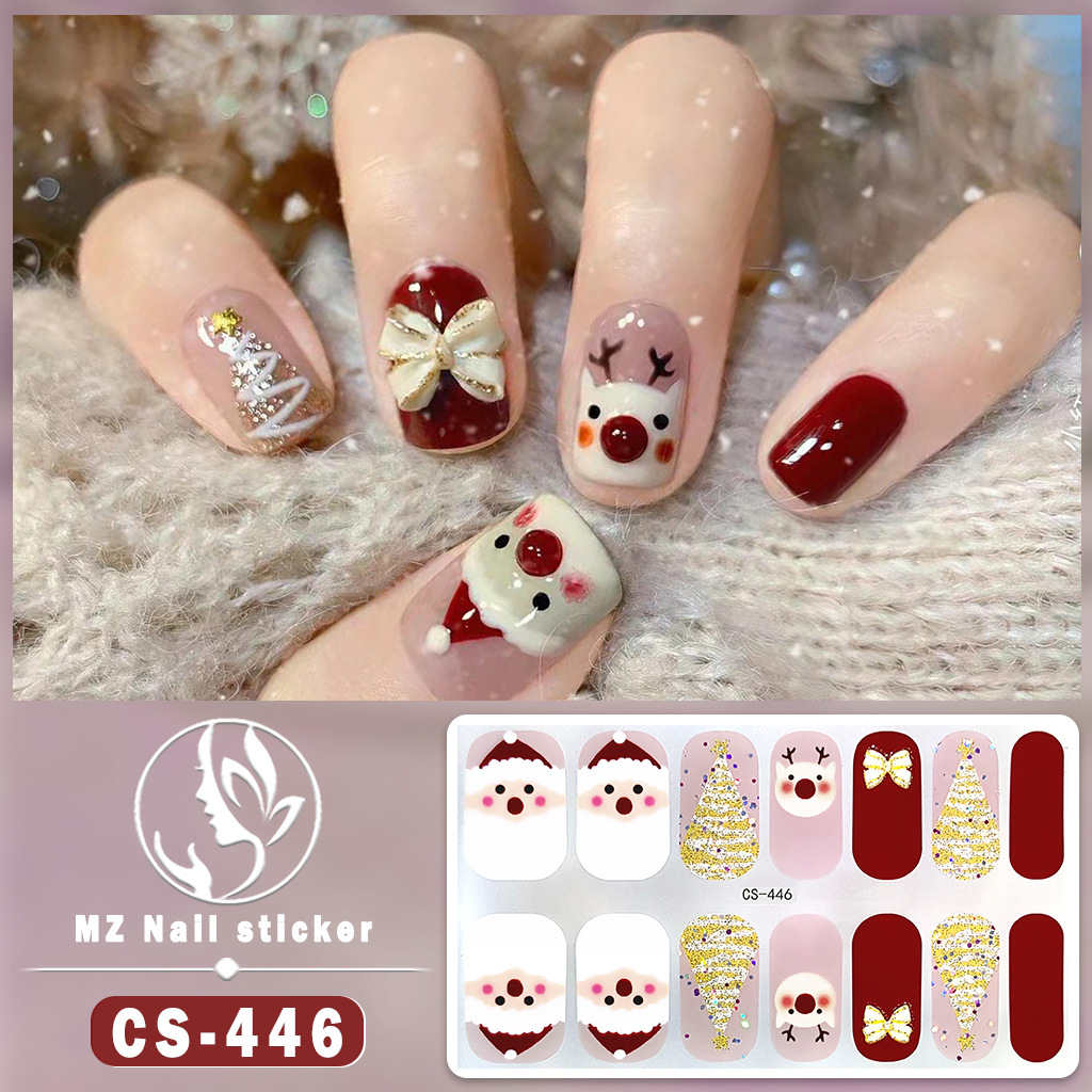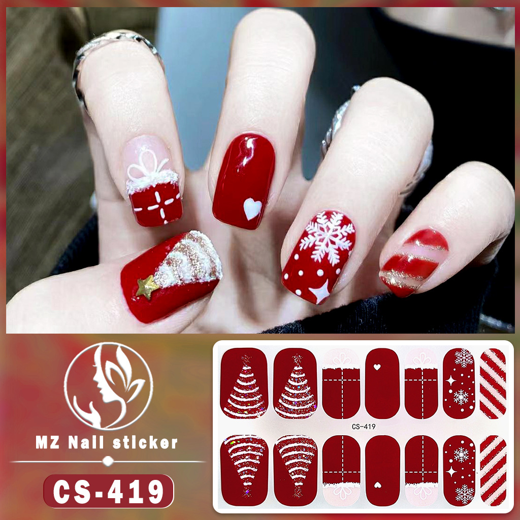 Рождественские гелевые наклейки для ногтей без выпечки Полные наклейки Милая Рождественская елка Санта-Клаус наклейки для ногтей Съемные