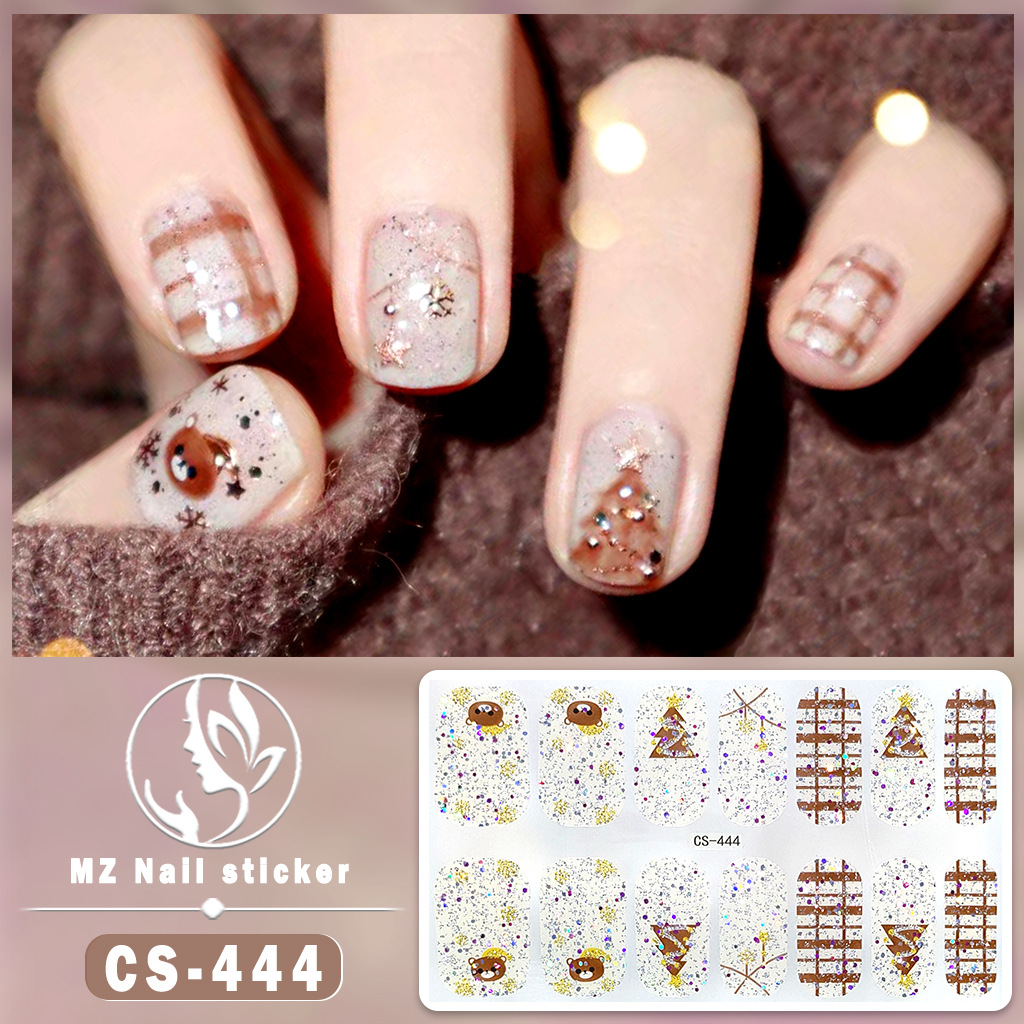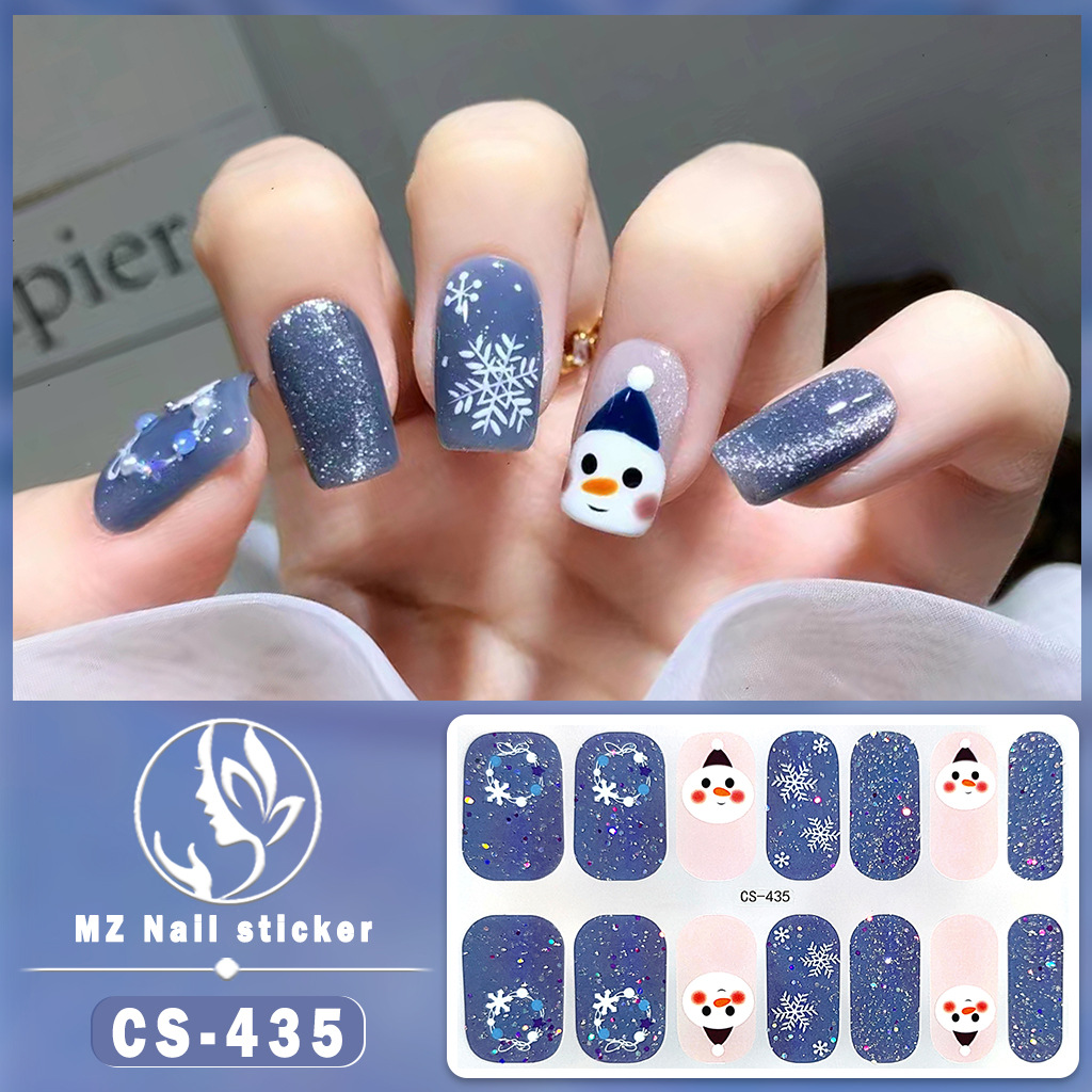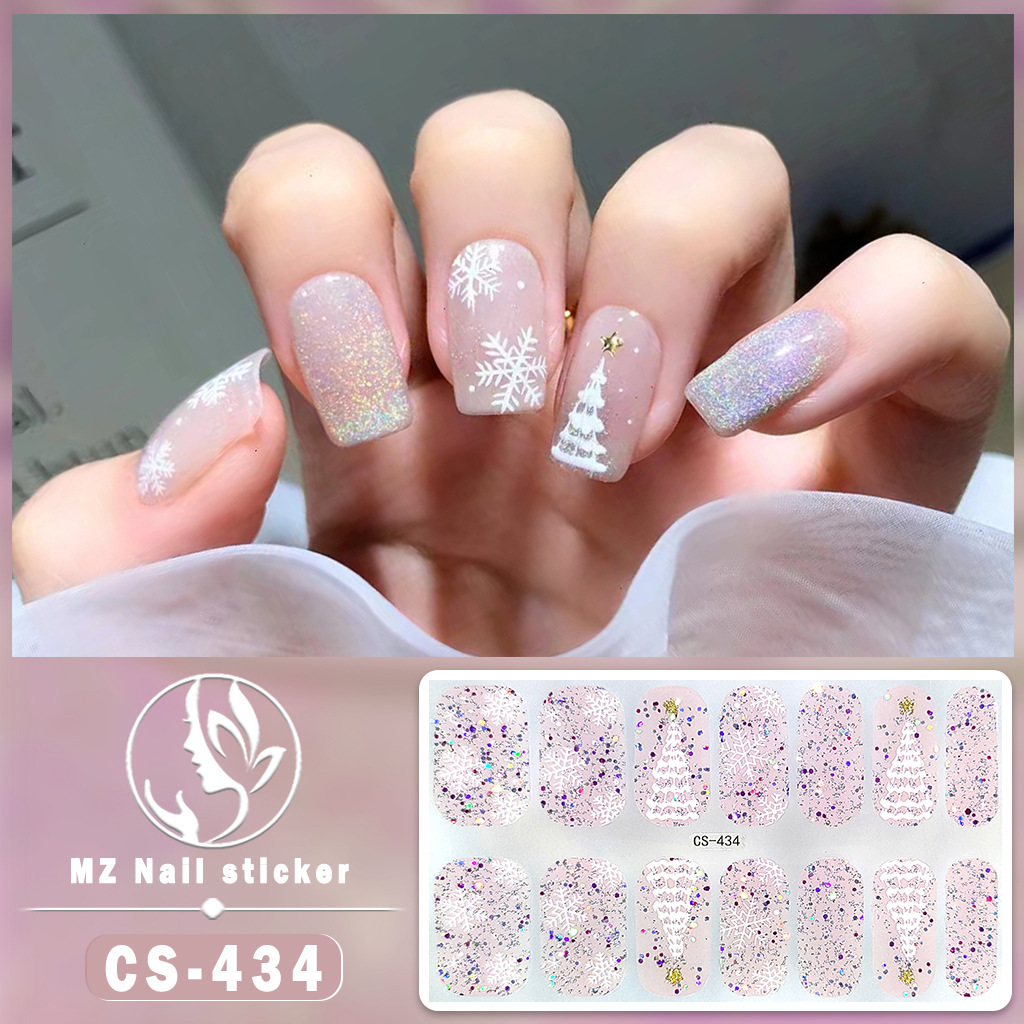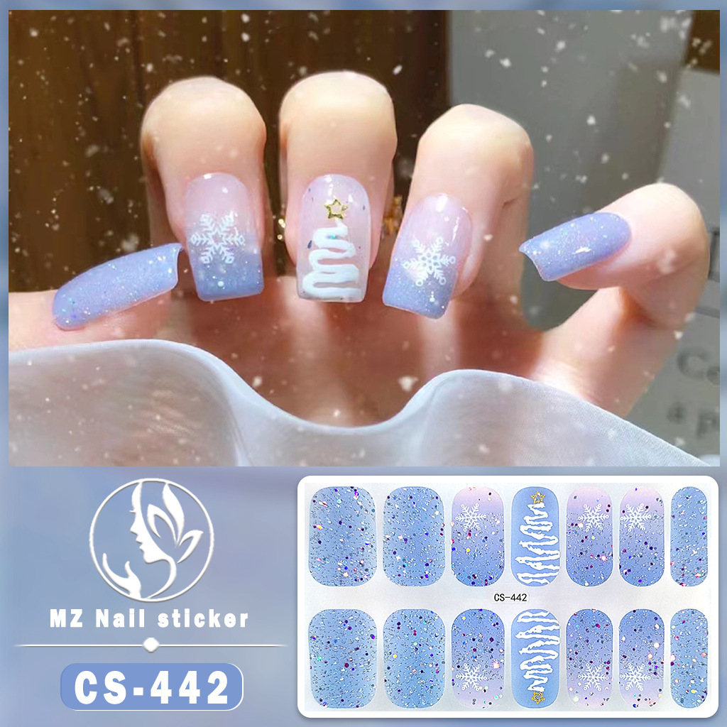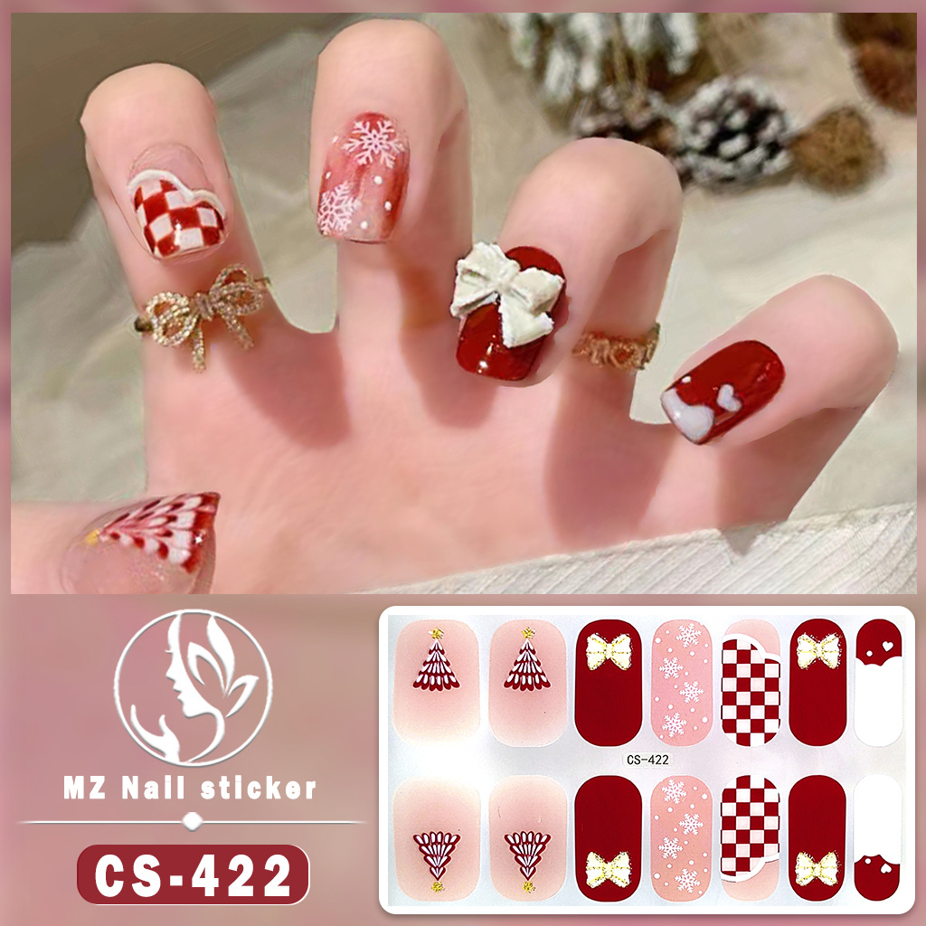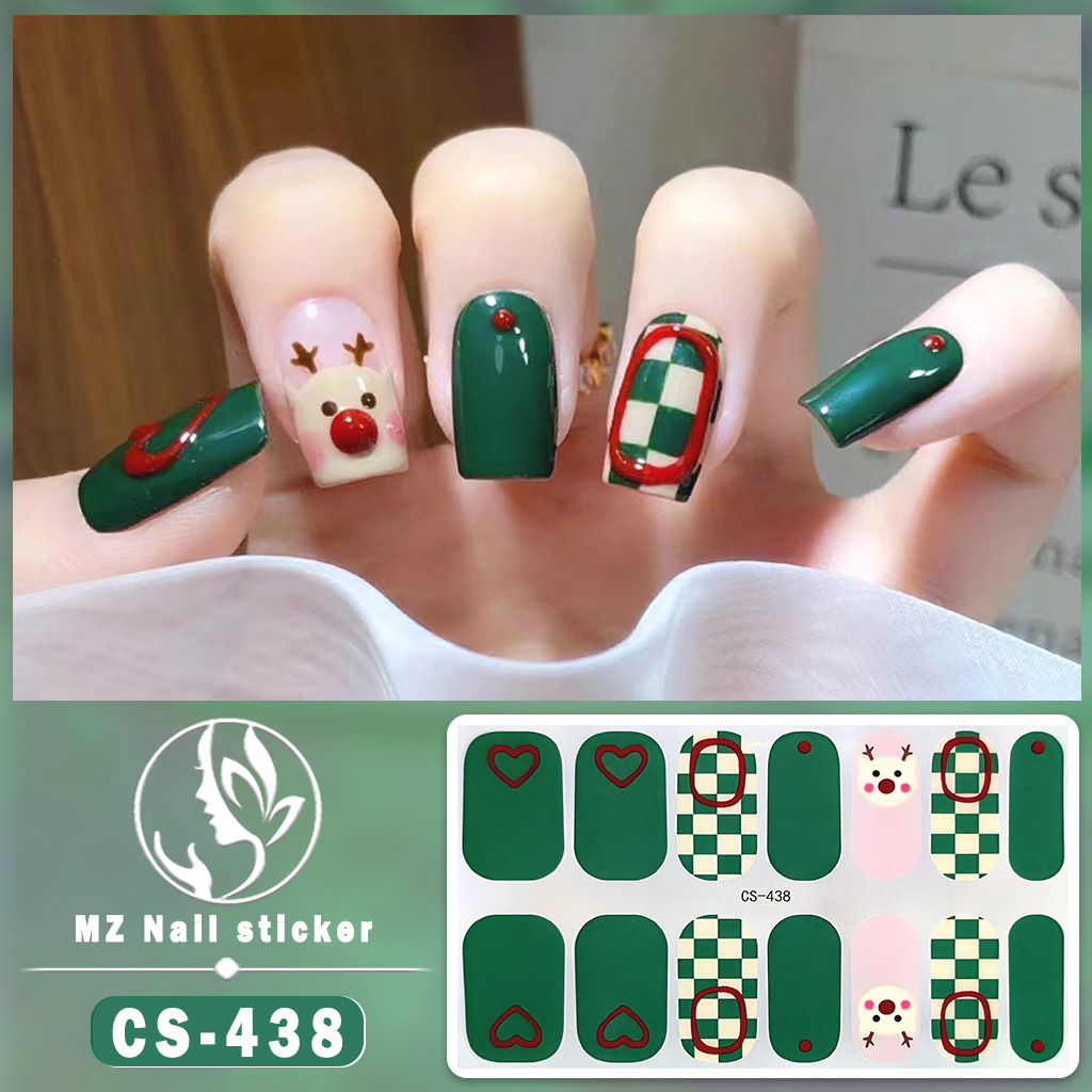Рождественские гелевые наклейки для ногтей без выпечки Полные наклейки Милая Рождественская елка Санта-Клаус наклейки для ногтей Съемные