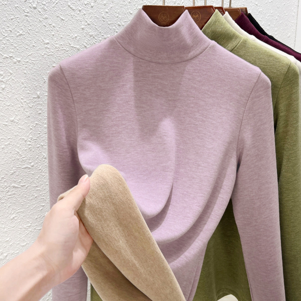 Женская одежда Осень/Зима 2025: базовая рубашка из шерсти и шелка, женский термофлисовый теплый топ с высоким воротом, на флисовой подкладке и утолщенный.