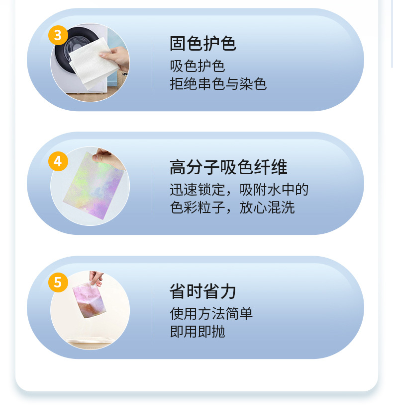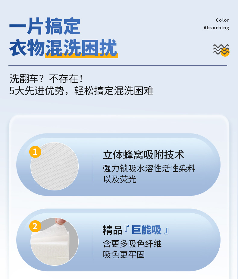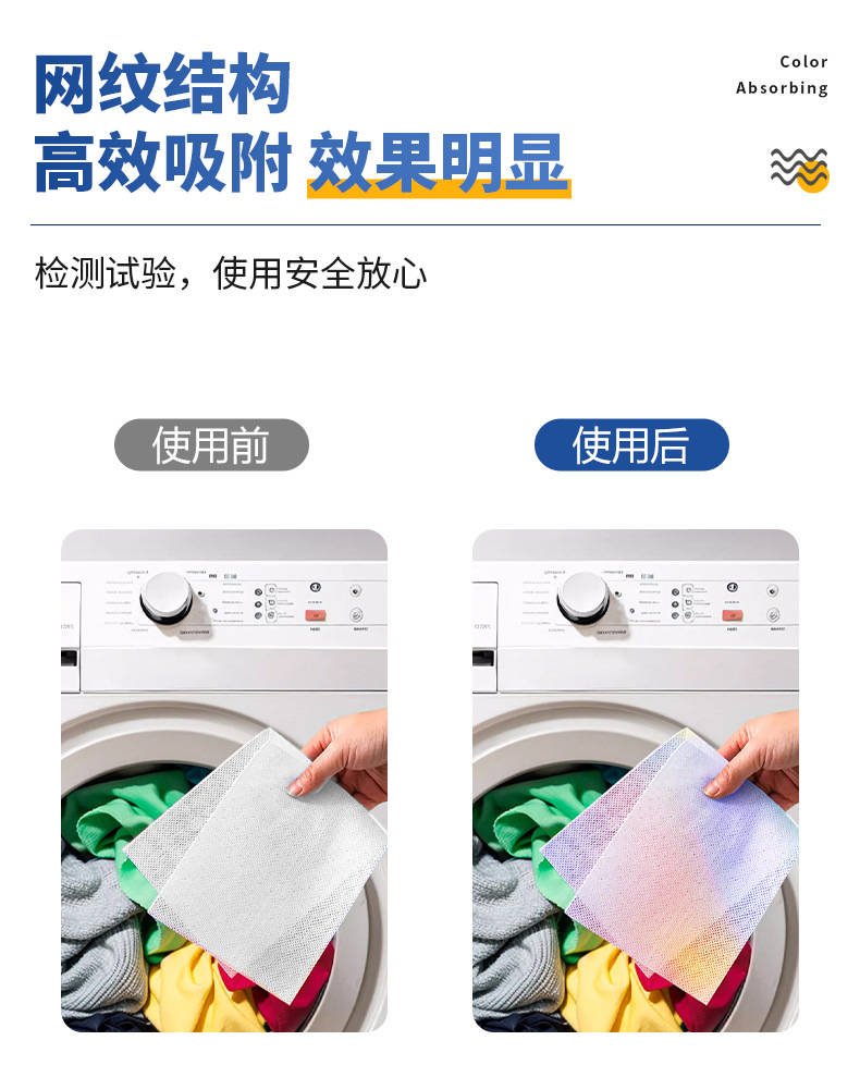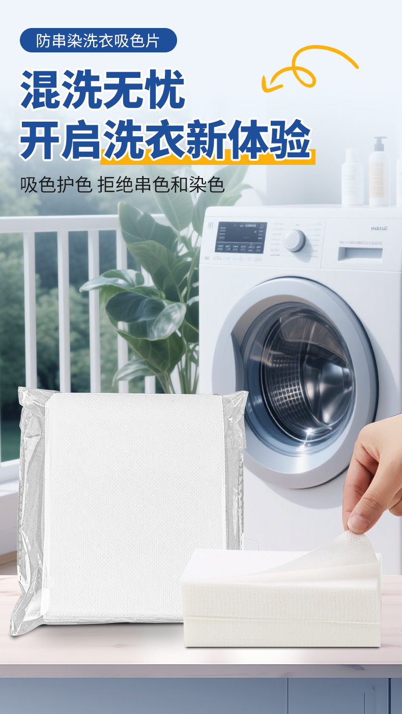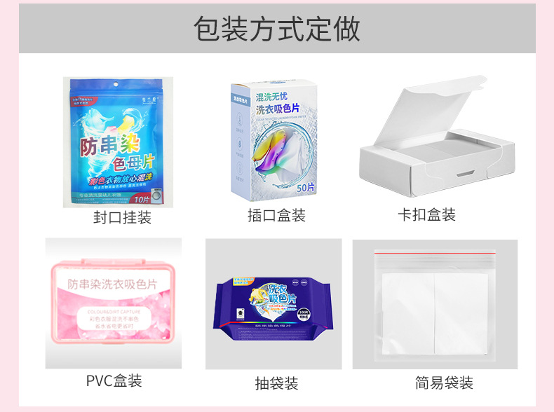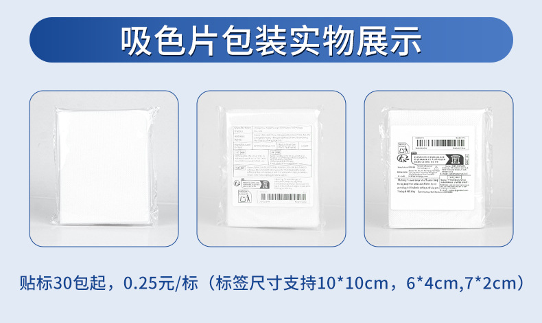 跨境贴标吸色片防串染深浅衣物混洗防串色洗衣片opp袋装色母片