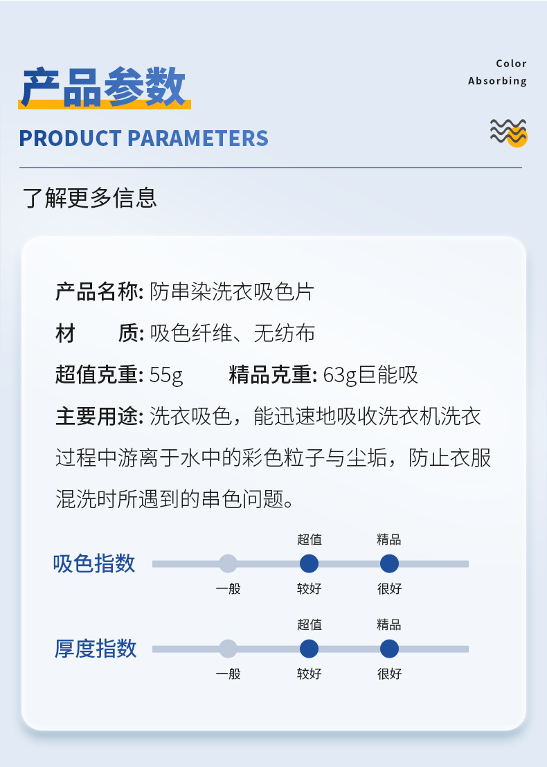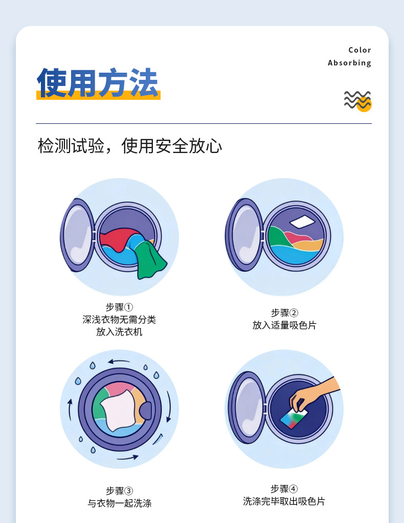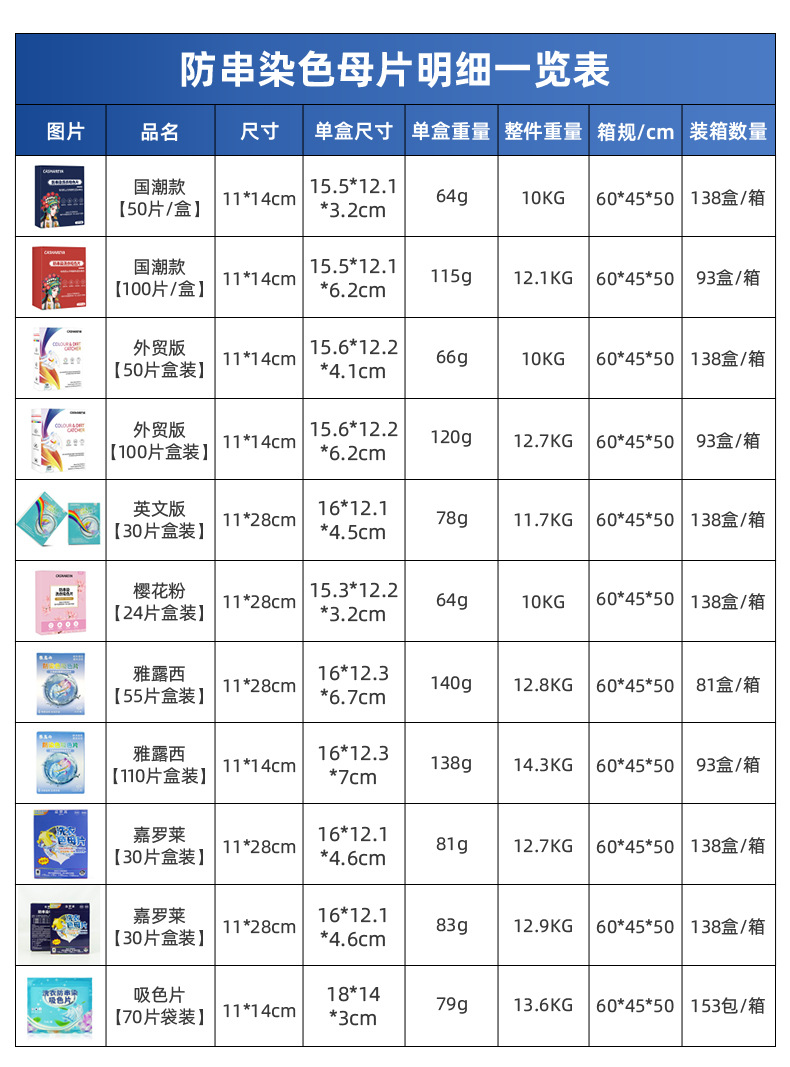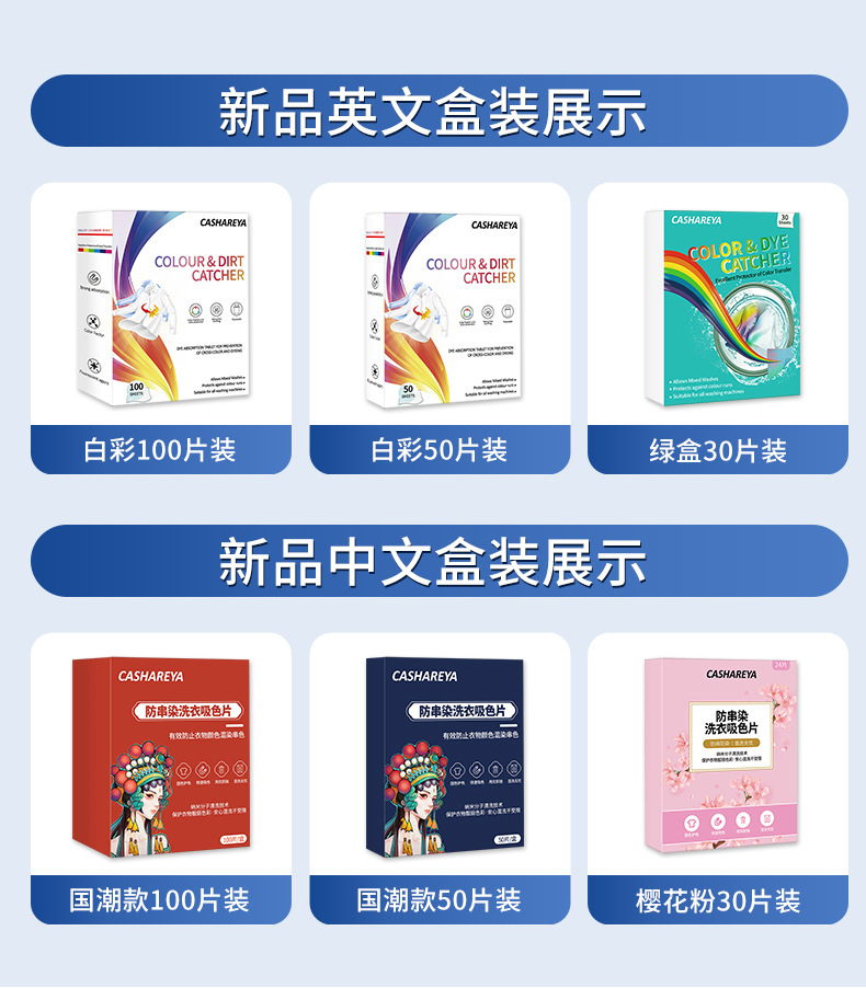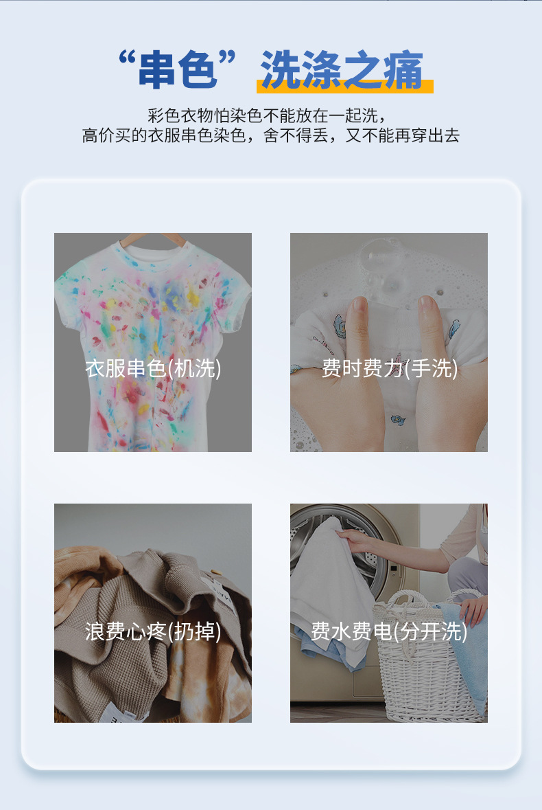 跨境贴标吸色片防串染深浅衣物混洗防串色洗衣片opp袋装色母片
