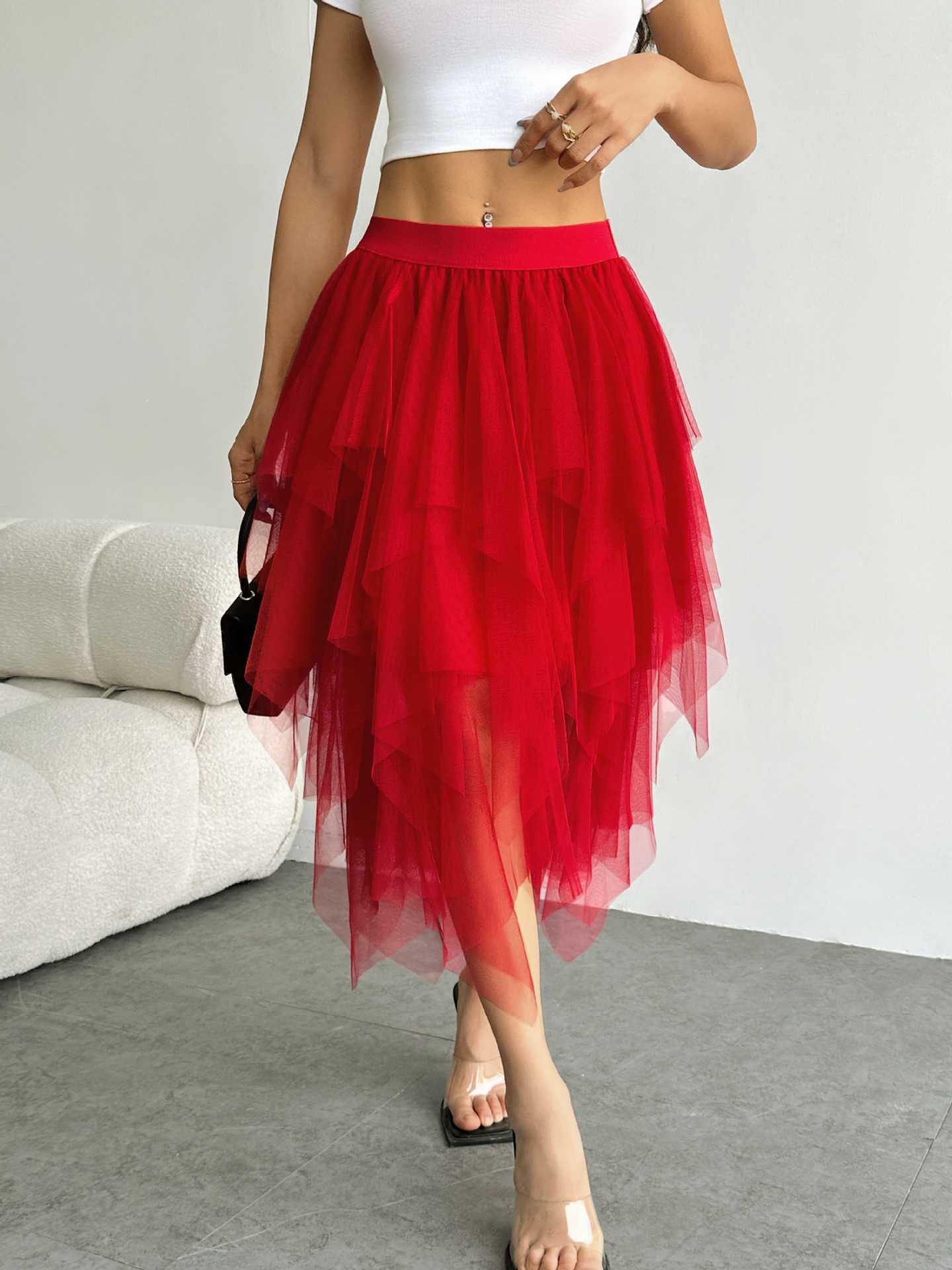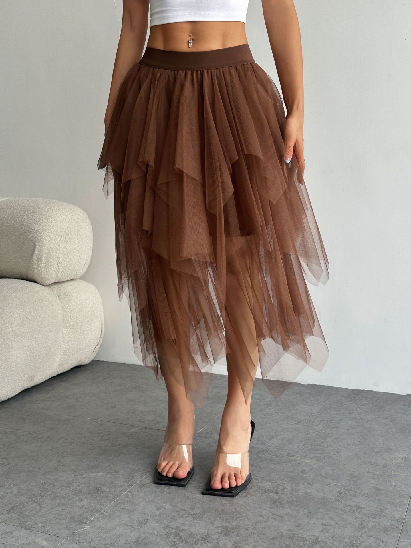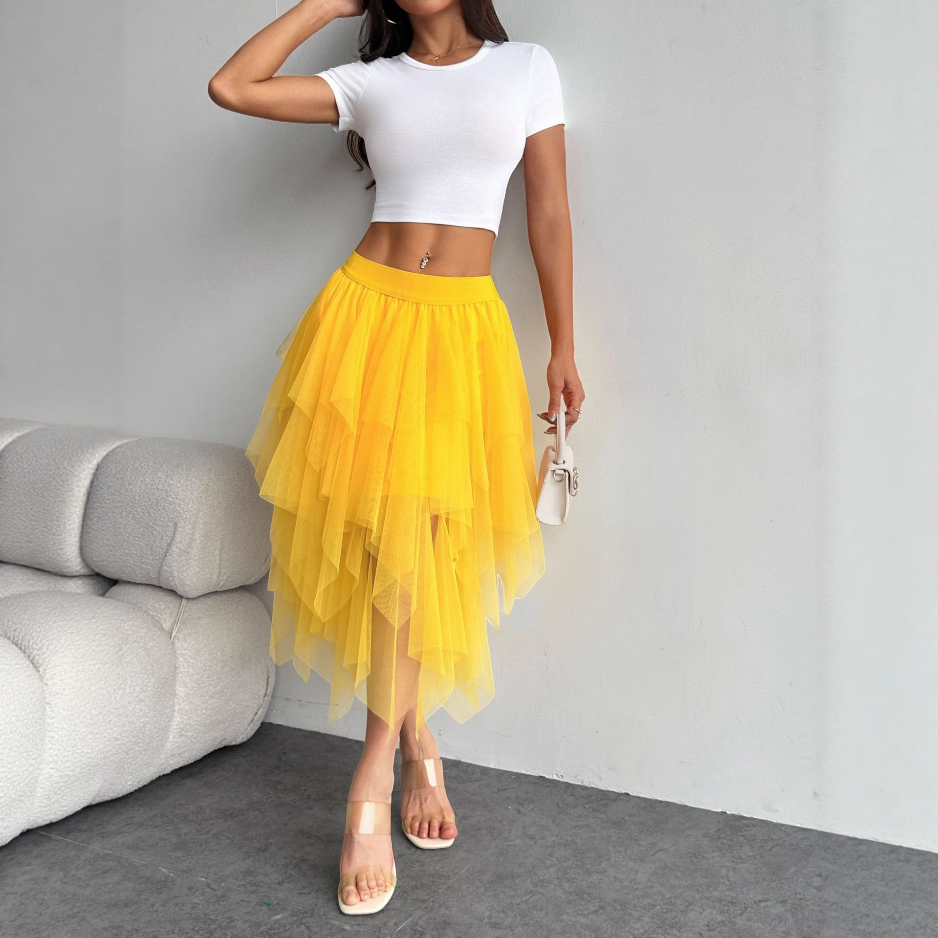 Нерегулярная сетчатая юбка для женщин средней и длинной весной 2025 новая юбка для платьев с высокой талией