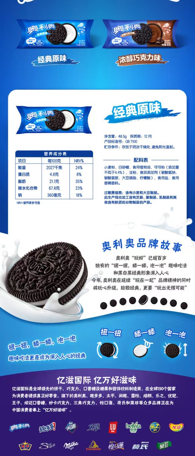 及时解决消费者售后问题.热心解答. 以服务为根本.以诚信求生存. 奥利奥袋装48.5g,箱规48袋。为了减少运输过程中的损耗,请按箱规倍数购买.