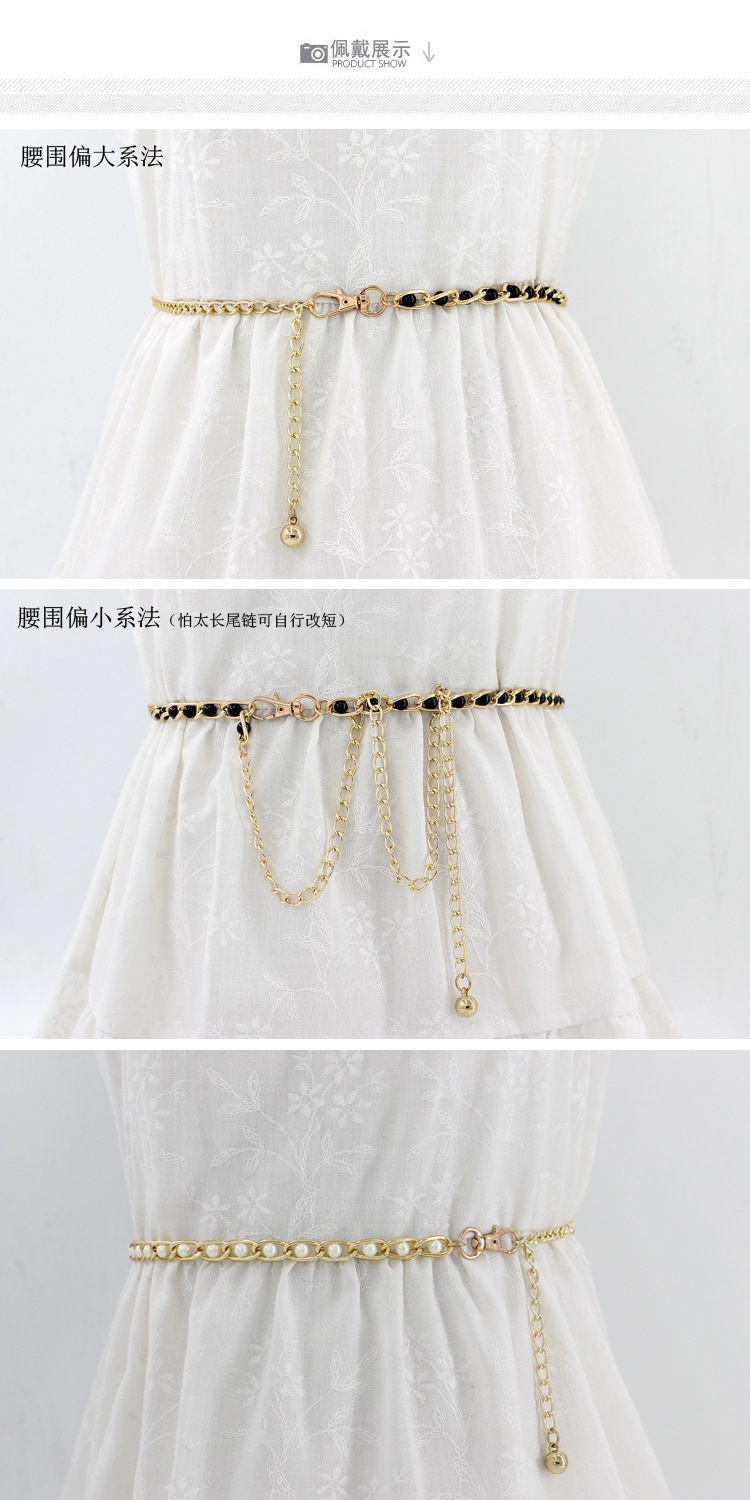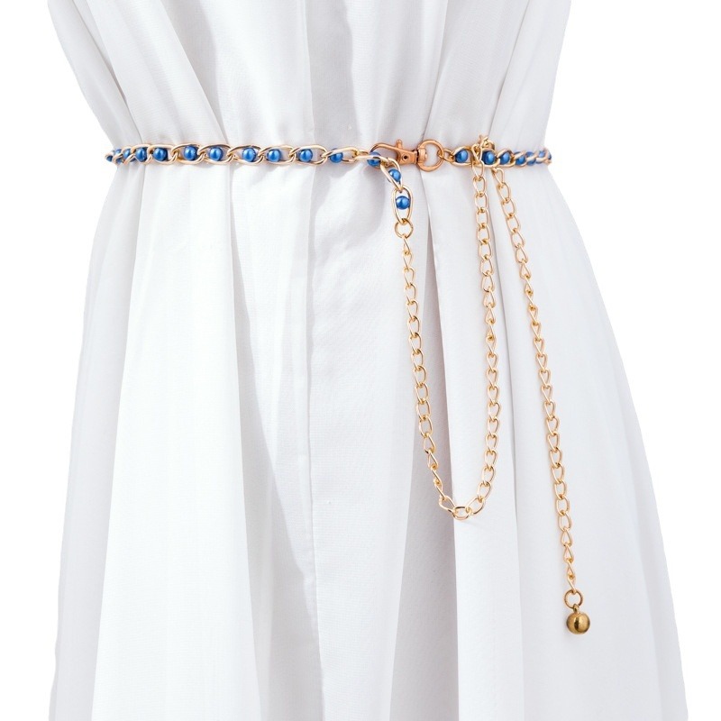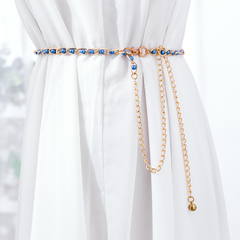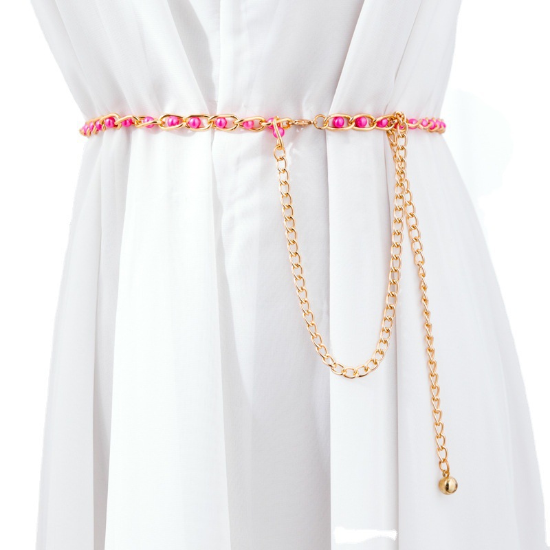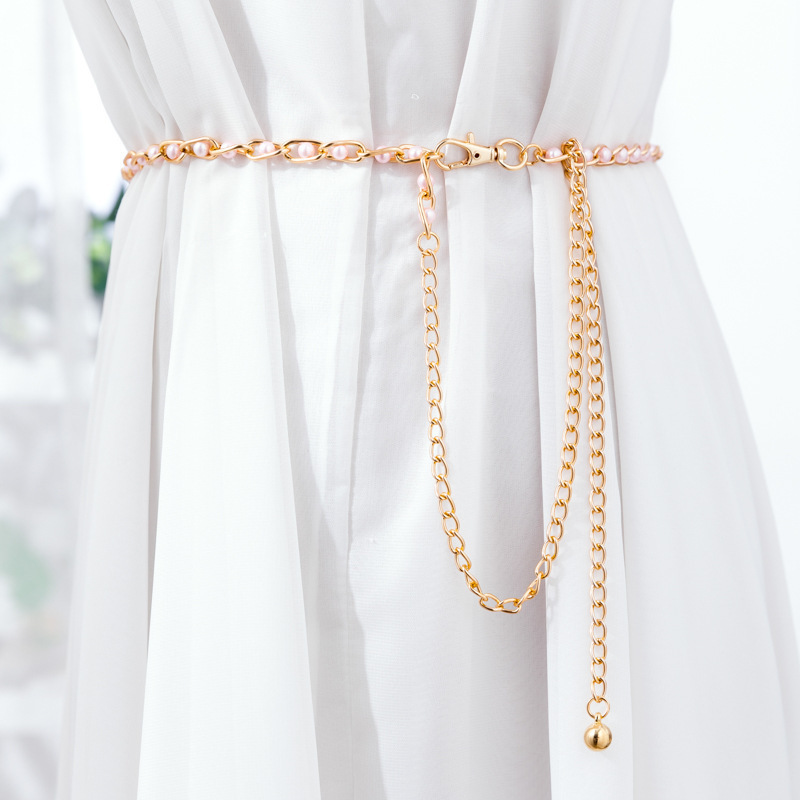 Женское весенне-летнее платье, украшенный жемчужным поясом, металлический крючок Joker, тонкая поясная цепочка, многоцветный цельный волос на выбор
