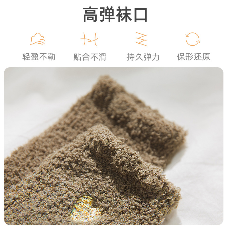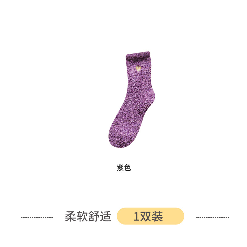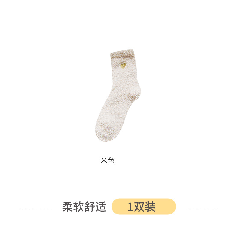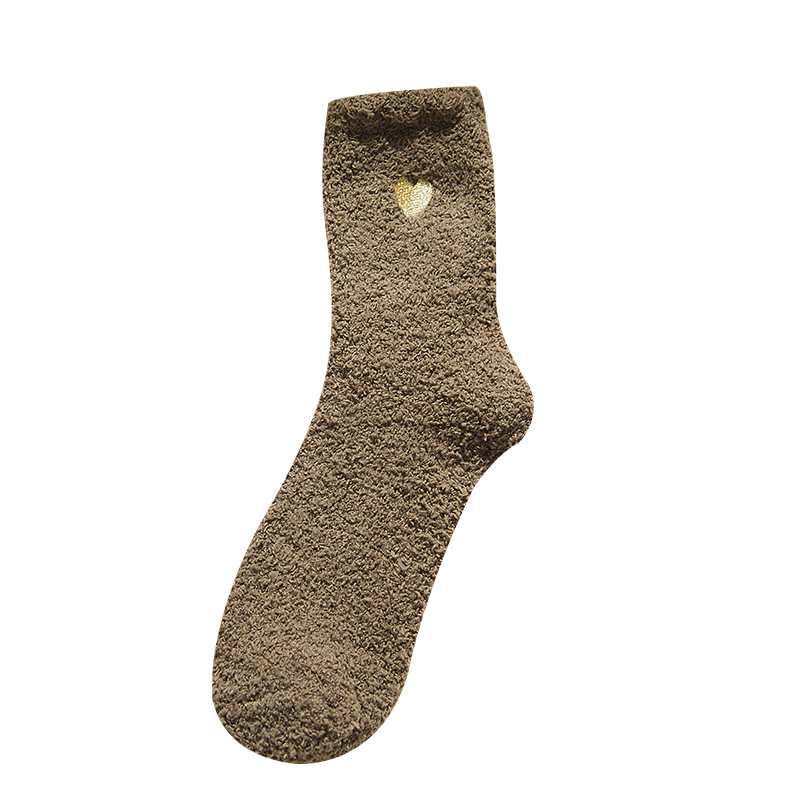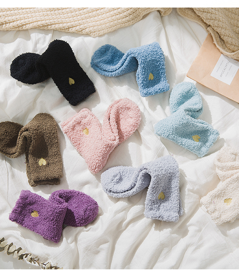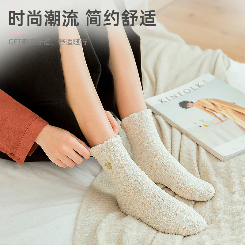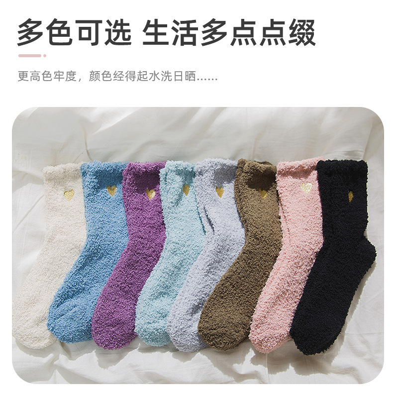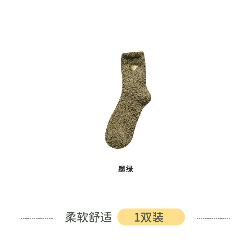 Коралловые бархатные носки с вышивкой любви, женские осенне-зимние теплые артефакты, простые утолщенные домашние носки средней длины для сна
