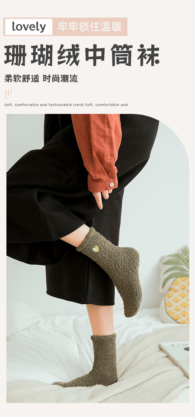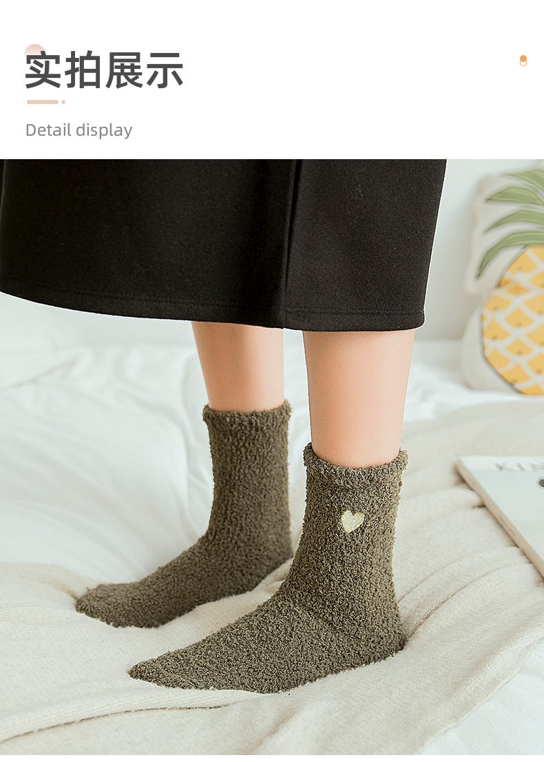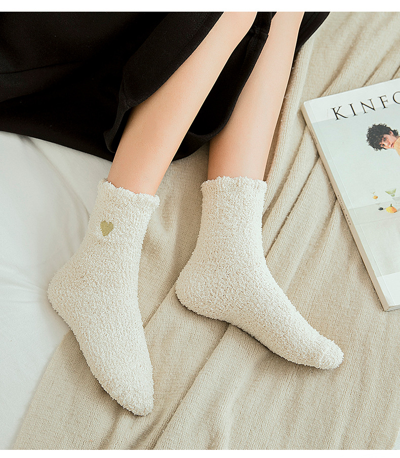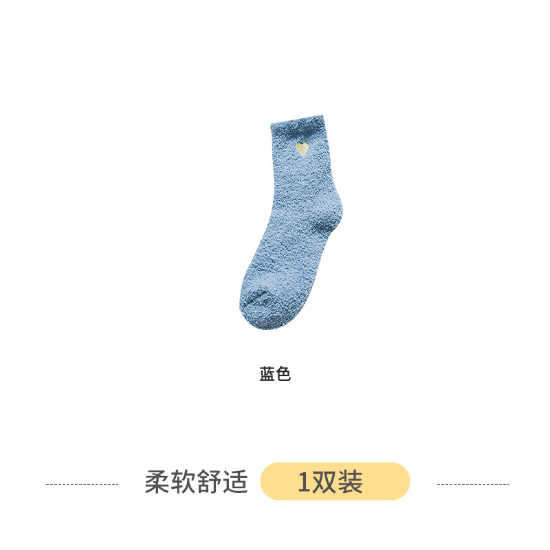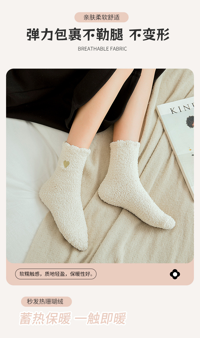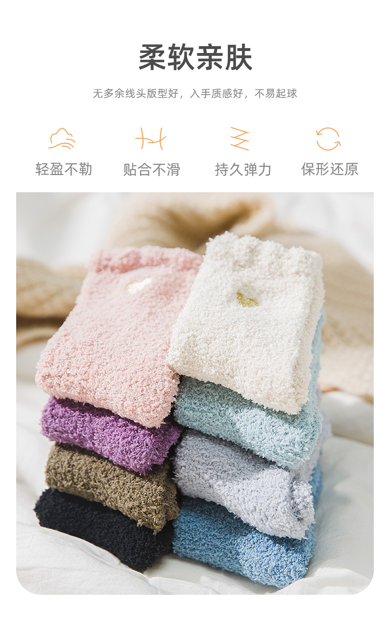 Коралловые бархатные носки с вышивкой любви, женские осенне-зимние теплые артефакты, простые утолщенные домашние носки средней длины для сна