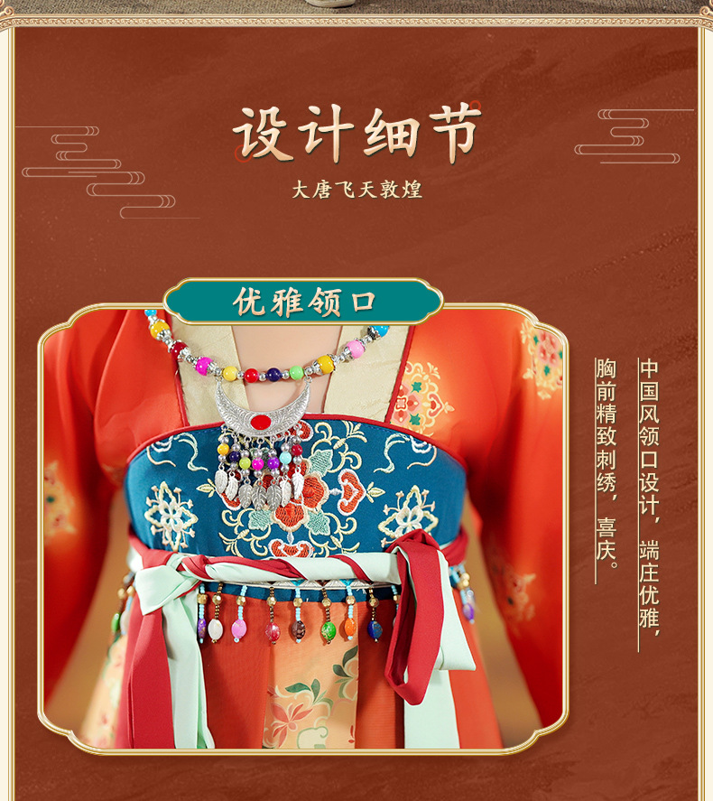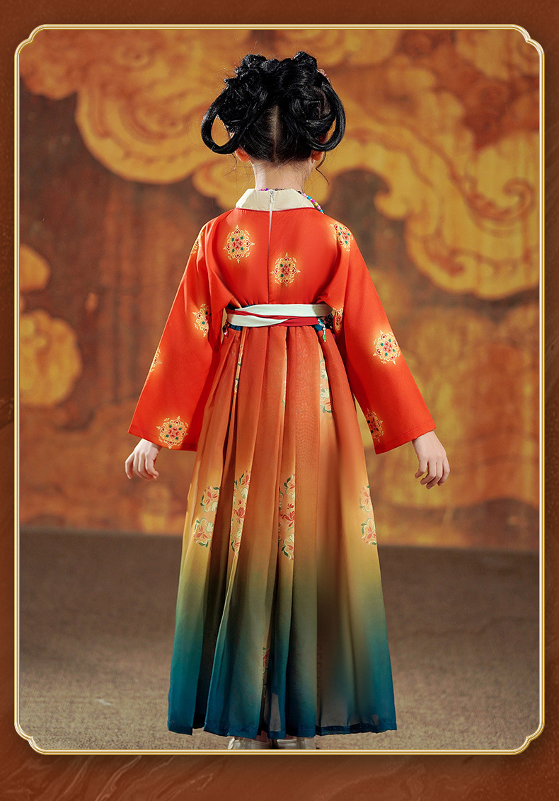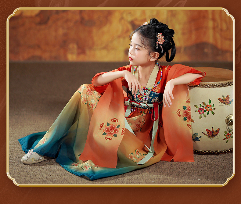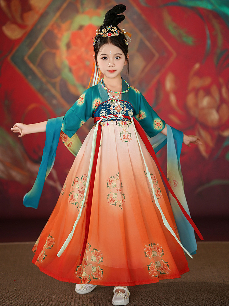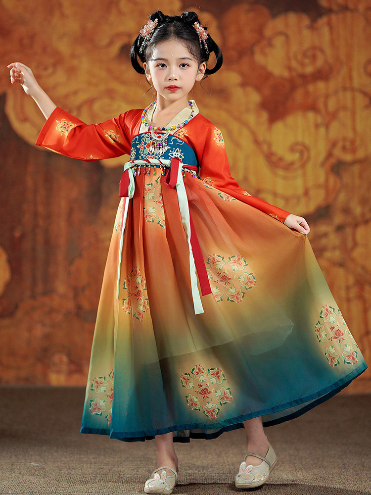 Ханьфу для девочек, новая модель 2026 года, детское платье в древнекитайском стиле с длинными рукавами, юбка в стиле династии Тан, китайский стиль, летучая фея из Дунхуаня.