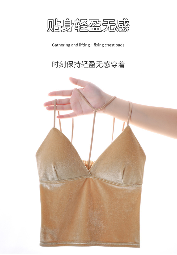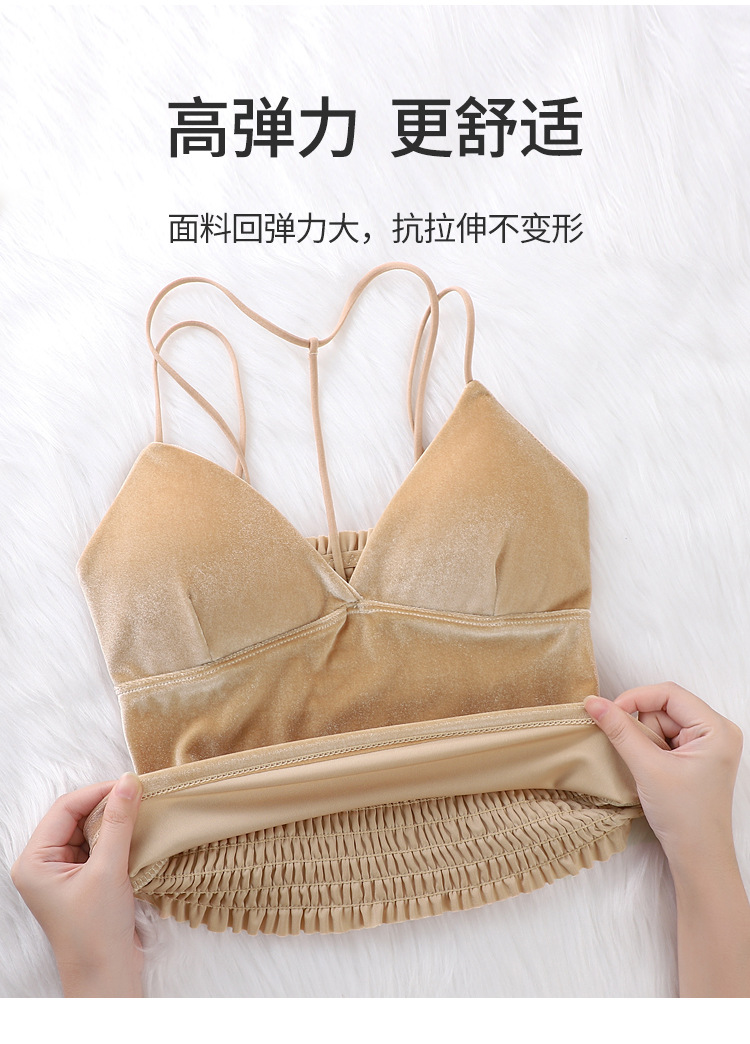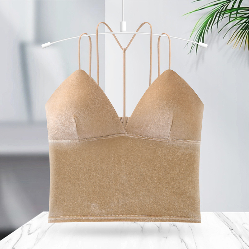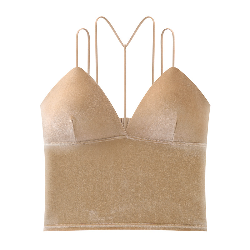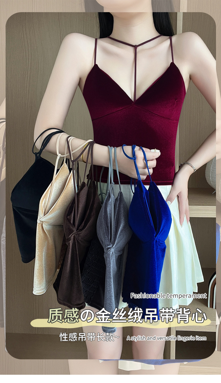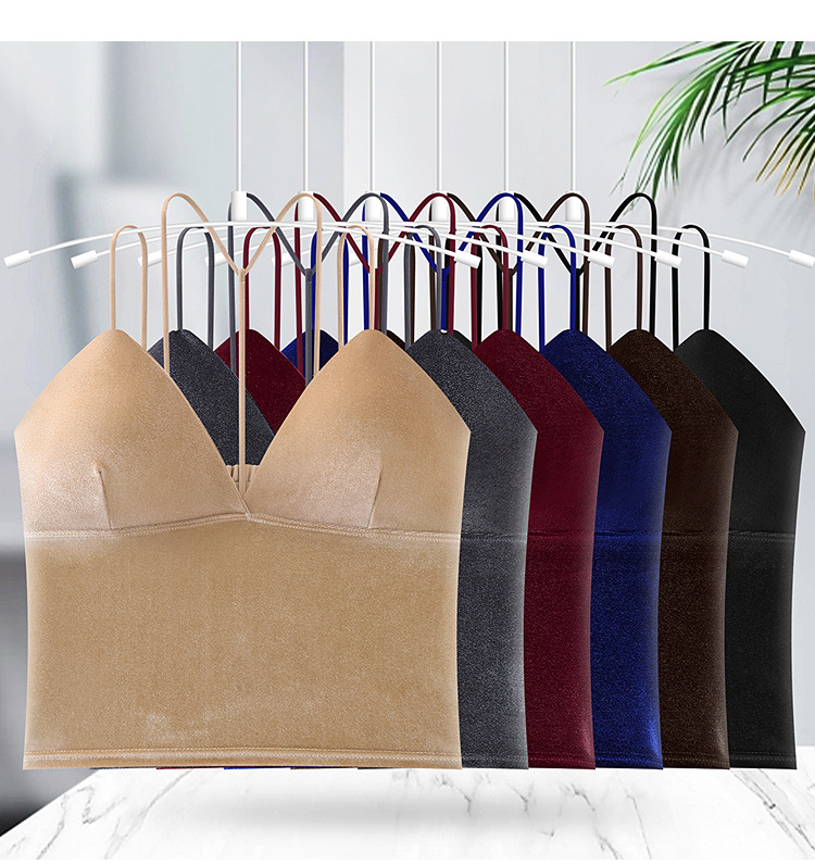 Pure Desire Gold Velvet Сексуальная подвесная Шея Красивая грудь Тонкий ремешок Слинг Красивая основа на спине Внутренняя одежда Верхняя одежда Жилет с нагрудной накладкой для женщин