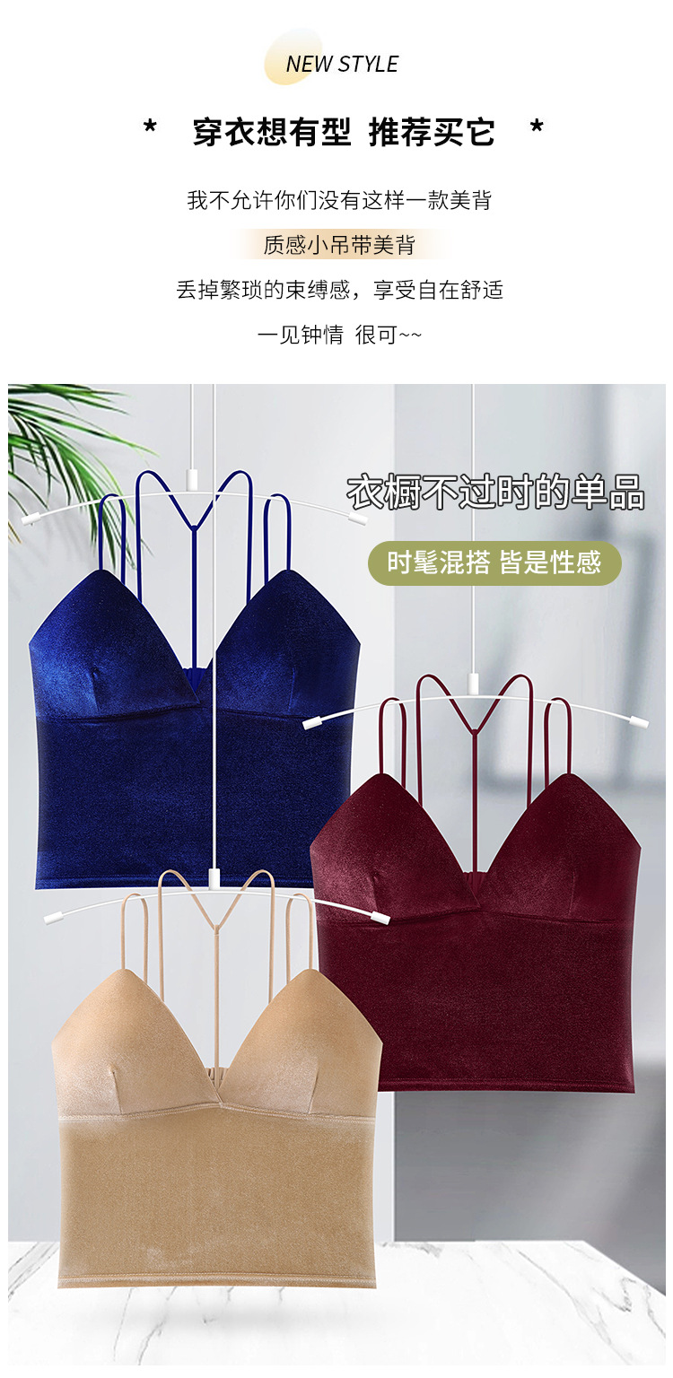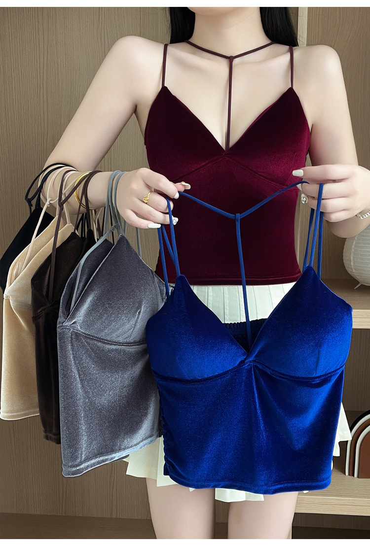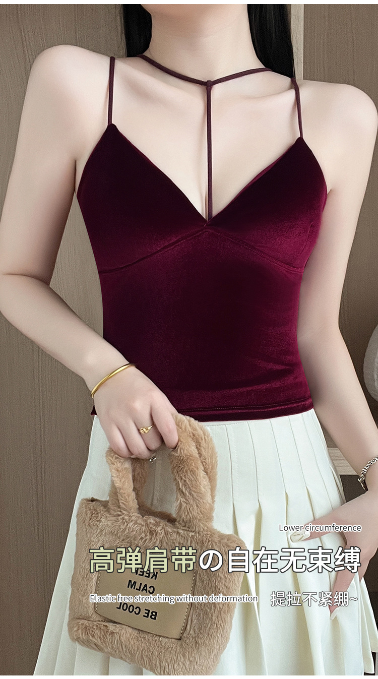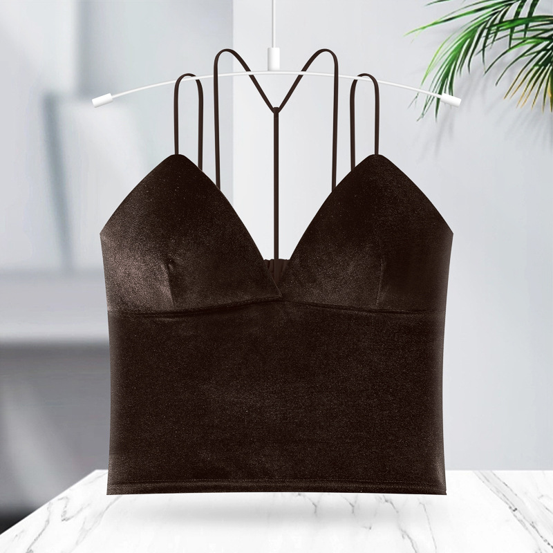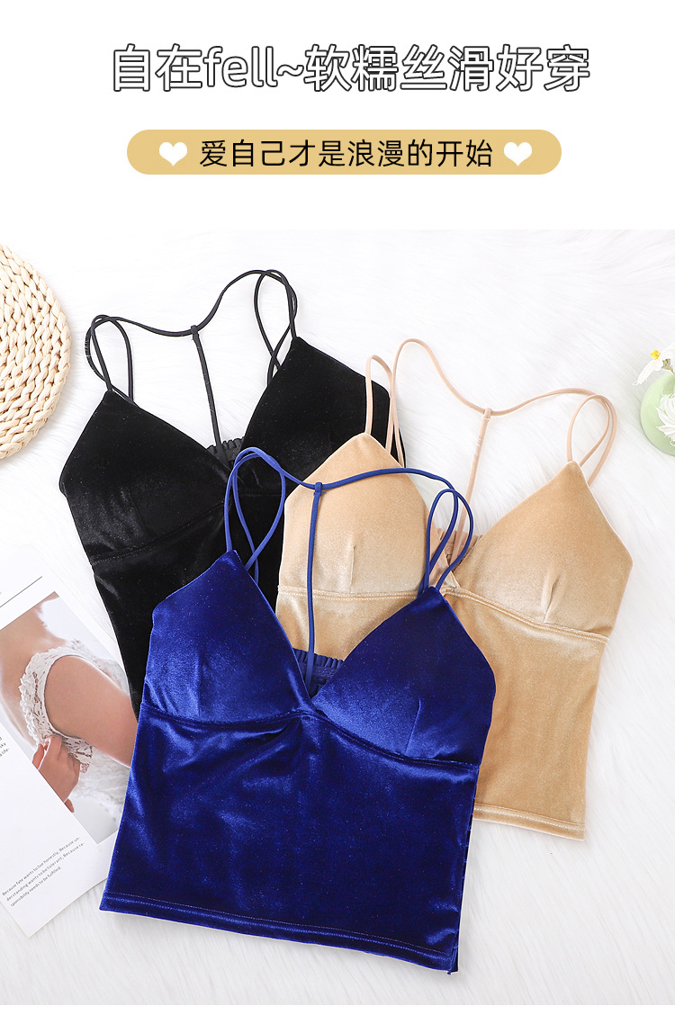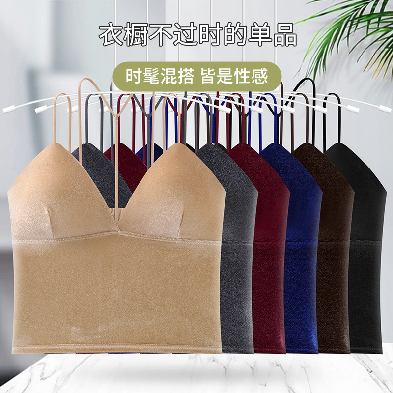 Pure Desire Gold Velvet Сексуальная подвесная Шея Красивая грудь Тонкий ремешок Слинг Красивая основа на спине Внутренняя одежда Верхняя одежда Жилет с нагрудной накладкой для женщин