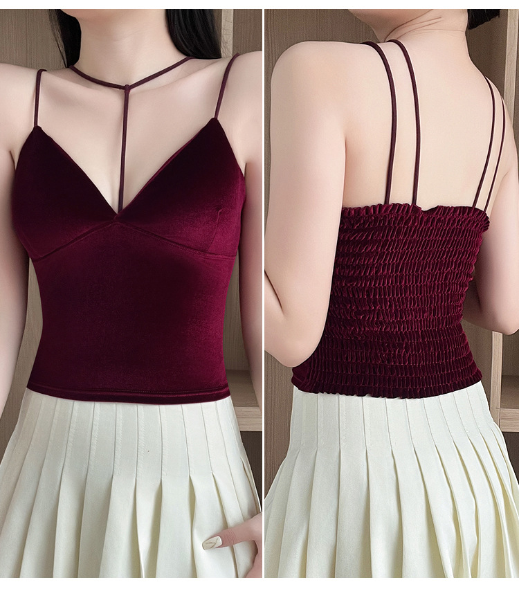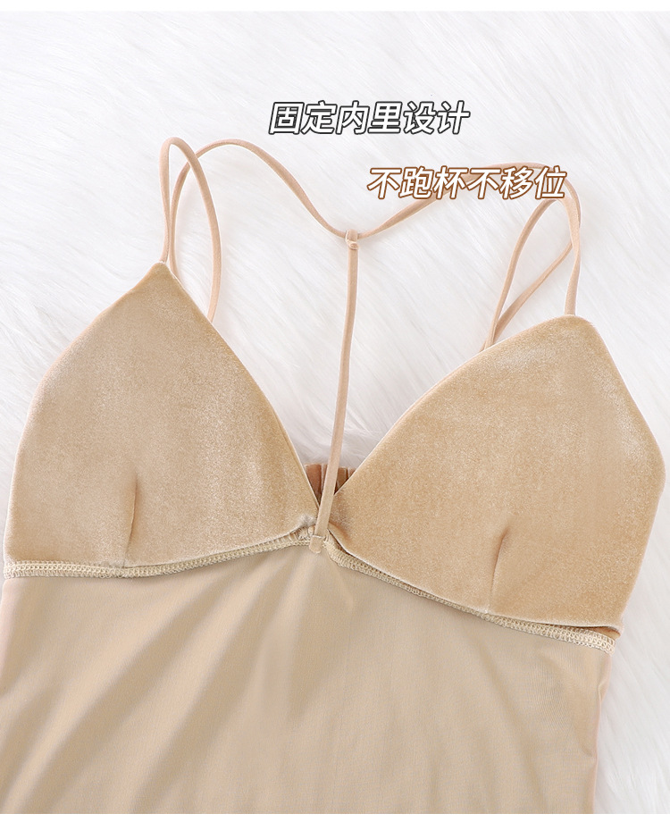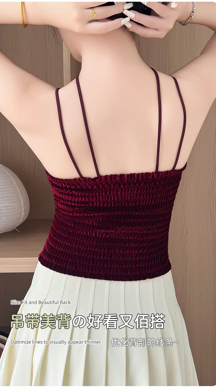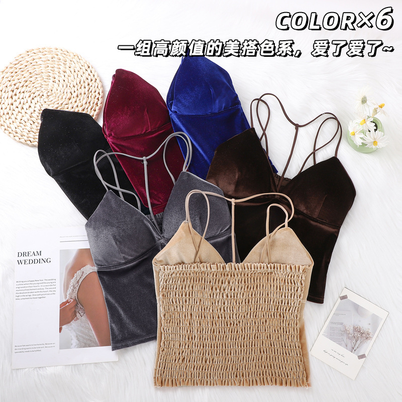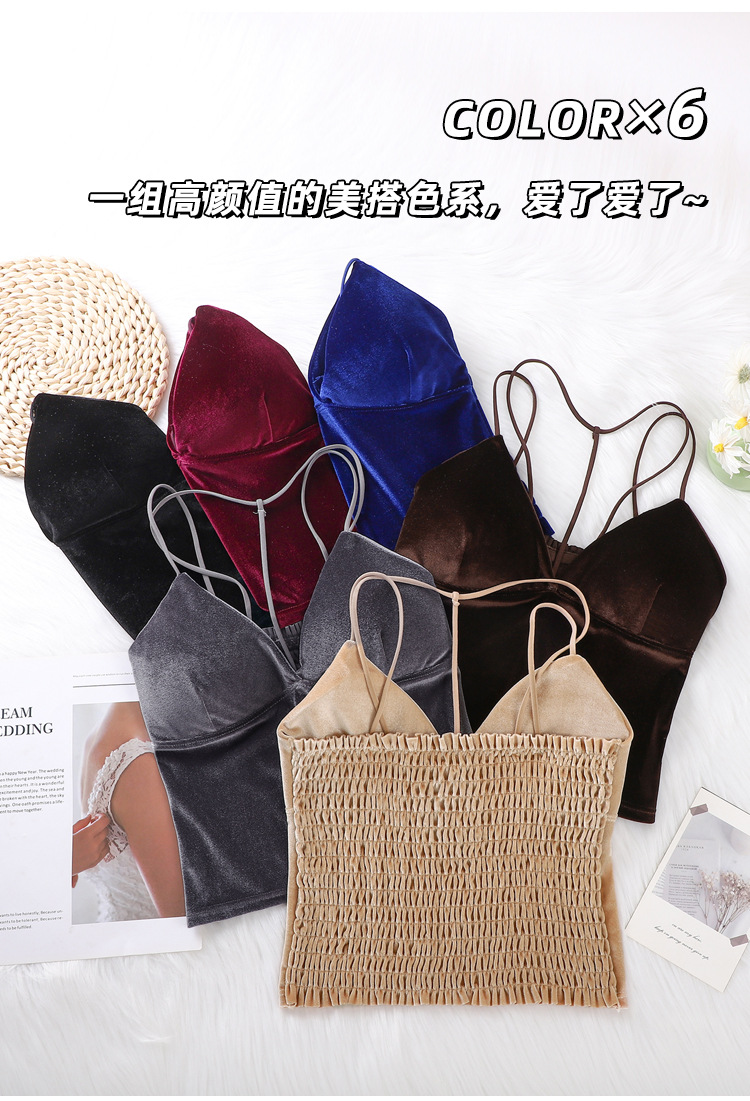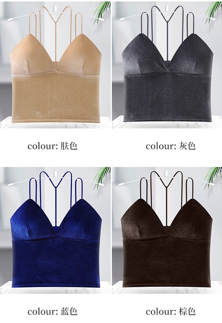 Pure Desire Gold Velvet Сексуальная подвесная Шея Красивая грудь Тонкий ремешок Слинг Красивая основа на спине Внутренняя одежда Верхняя одежда Жилет с нагрудной накладкой для женщин