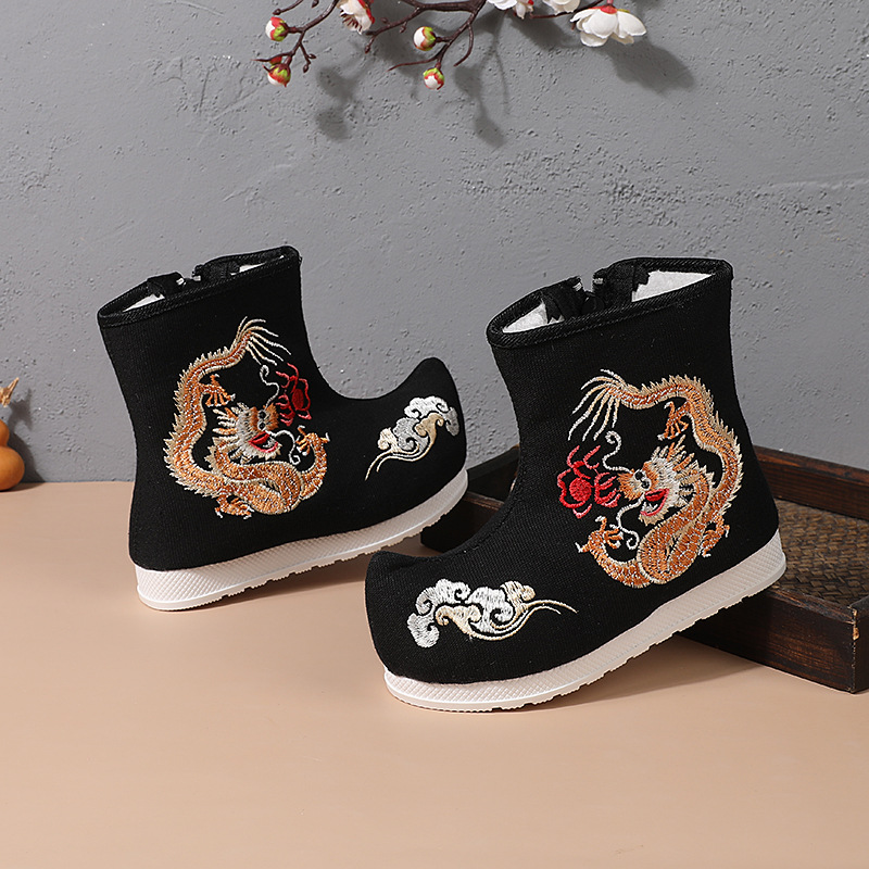 Ботинки Longjing Hanfu Тканевая обувь для мальчиков в этническом стиле Древний костюм Детская обувь ручной работы в китайском стиле с вышивкой Старинная Пекинская Тканевая обувь