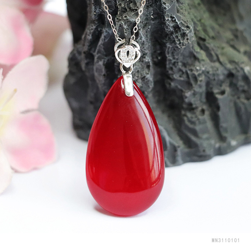 S925 Серебряная инкрустированная подвеска в виде капли красного агата (не с цепочкой) MN3110101