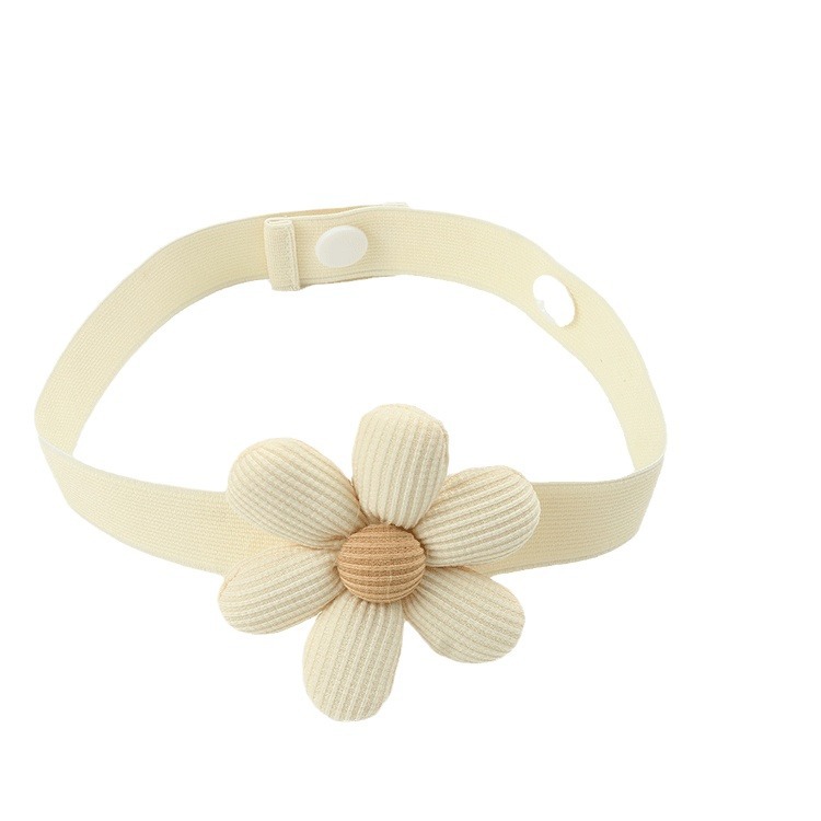 Цветок бежевого цвета; Цветок цвета хаки; Три цветка бежевого цвета; три цветка хаки; Резинка бежевого цвета; Эластичная лента цвета хаки; Пряжка в форме цветка, бежевая.; Цветок хаки с пряжкой; Бежевая тканевая полоска с цветочным принтом; Полоска ткани с коричневым цветочным узором