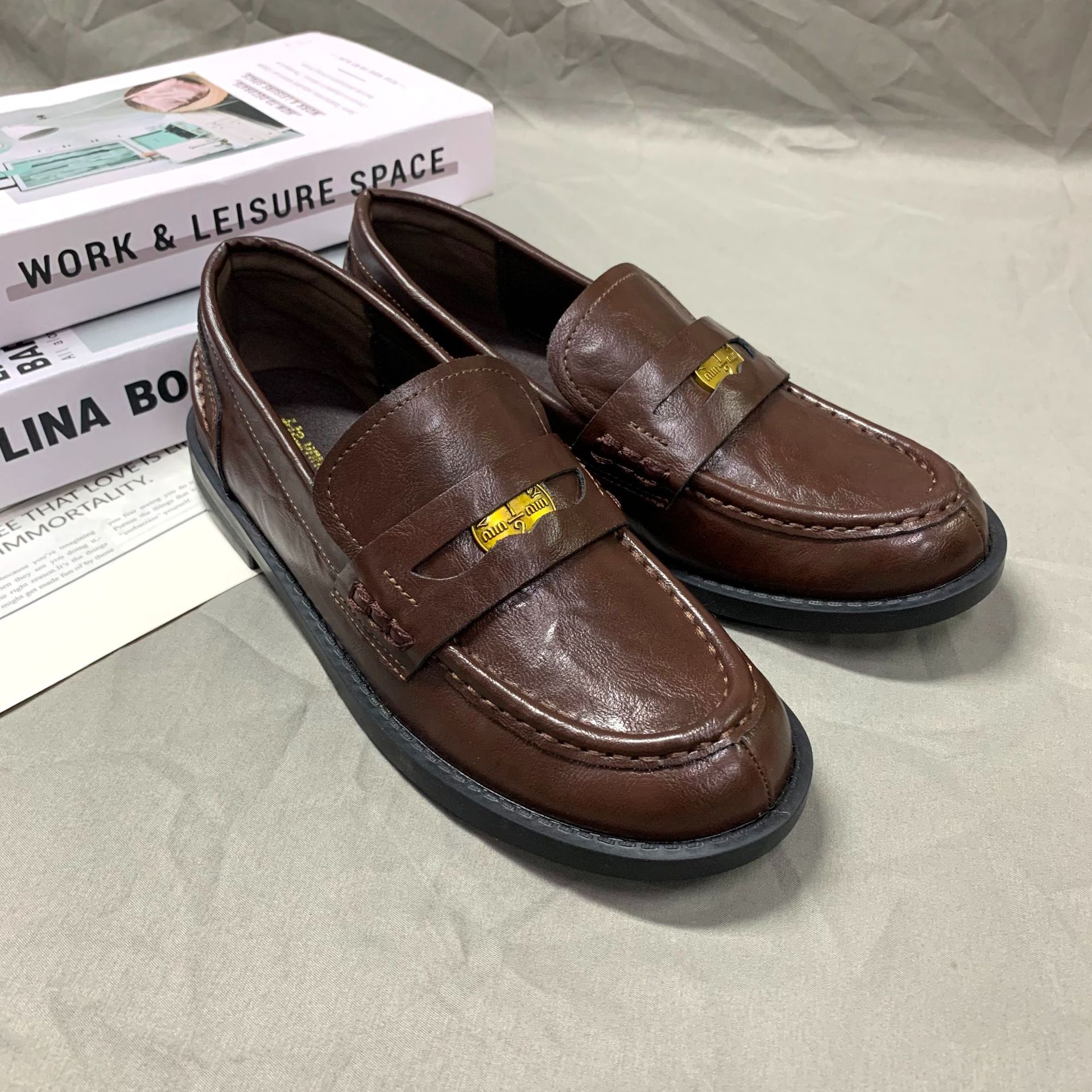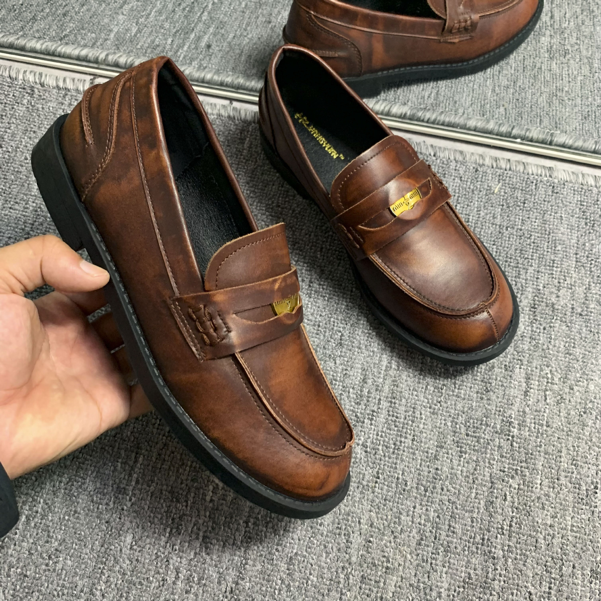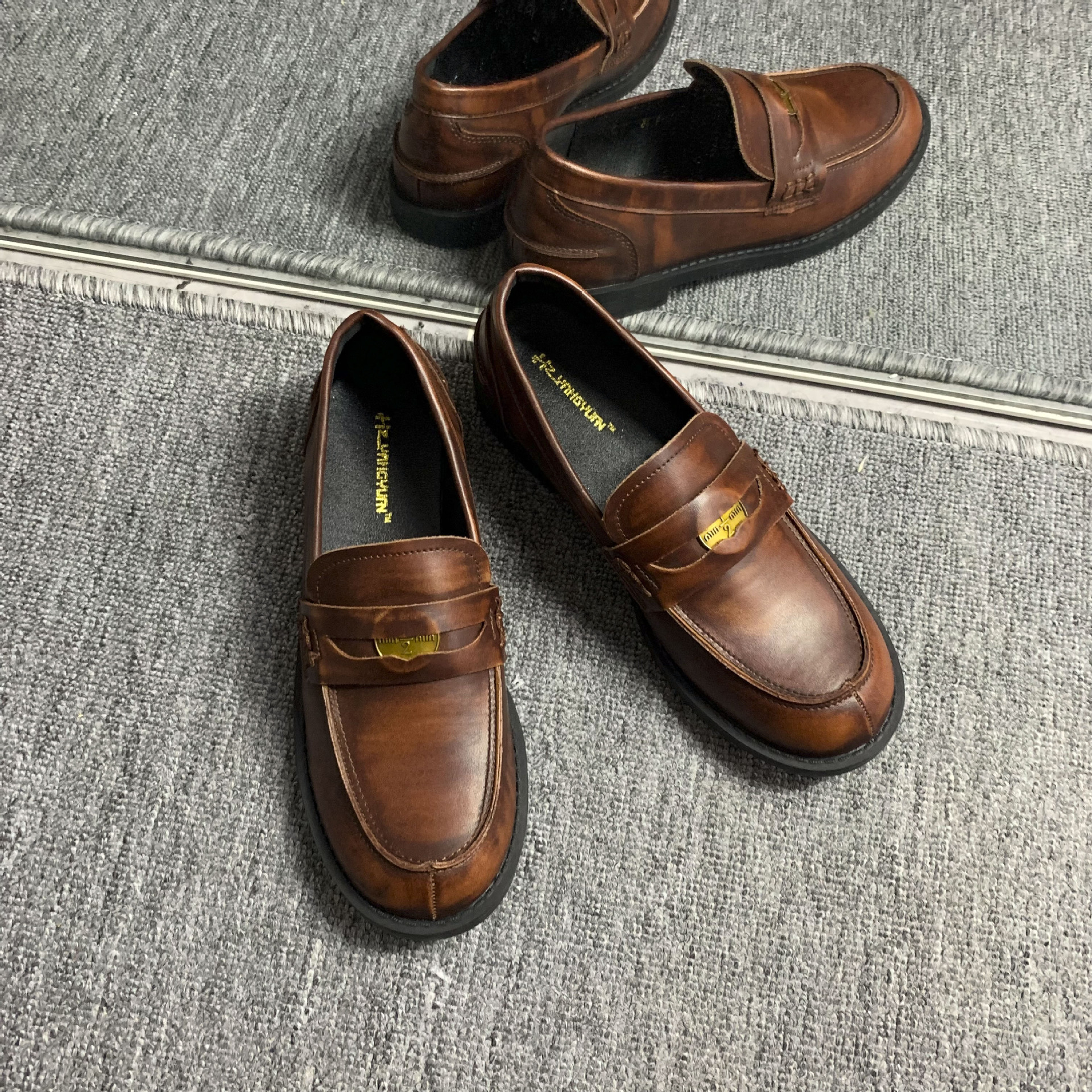 В наличии, немедленная отправка! Модные и универсальные новые лоферы на платформе с круглым носком, в стиле ретро, с эффектом потертости, на толстом каблуке, из натуральной кожи.