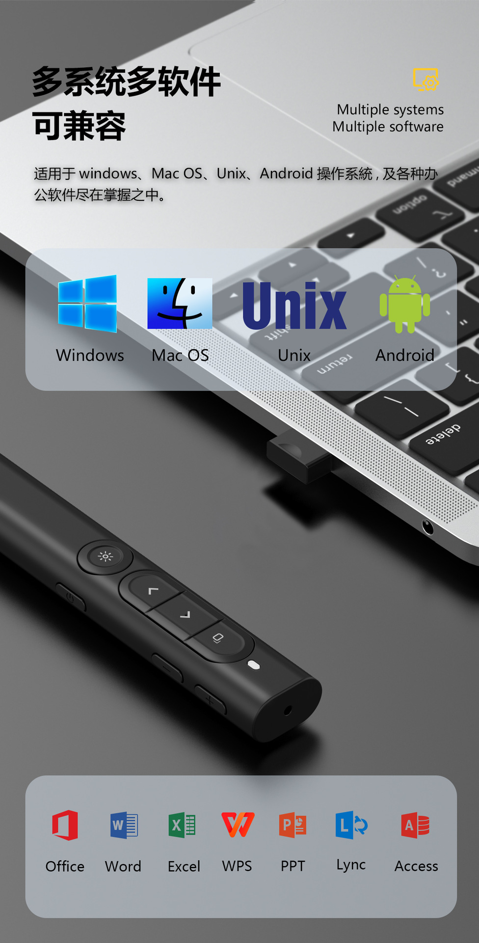 Многофункциональный беспроводной перезаряжаемый лазерный указатель Seewo для презентаций, офиса и лекций, с функцией перелистывания страниц PPT