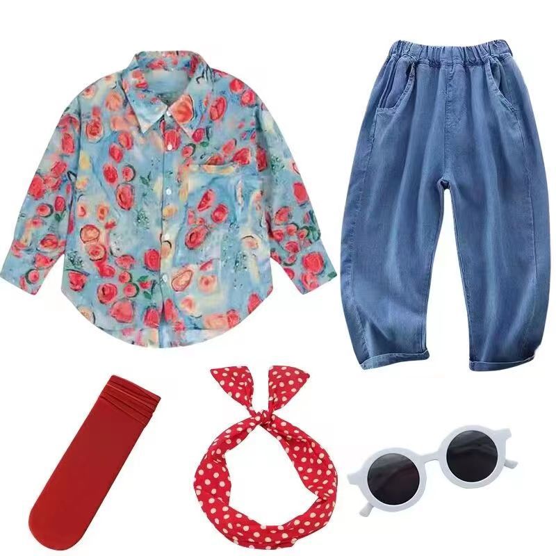 Спортивная одежда, танцевальный костюм Heartbreak Alliance, рубашка с цветочным принтом в стиле 90-х, одежда в гонконгском стиле с длинными рукавами, спортивный костюм для танцев