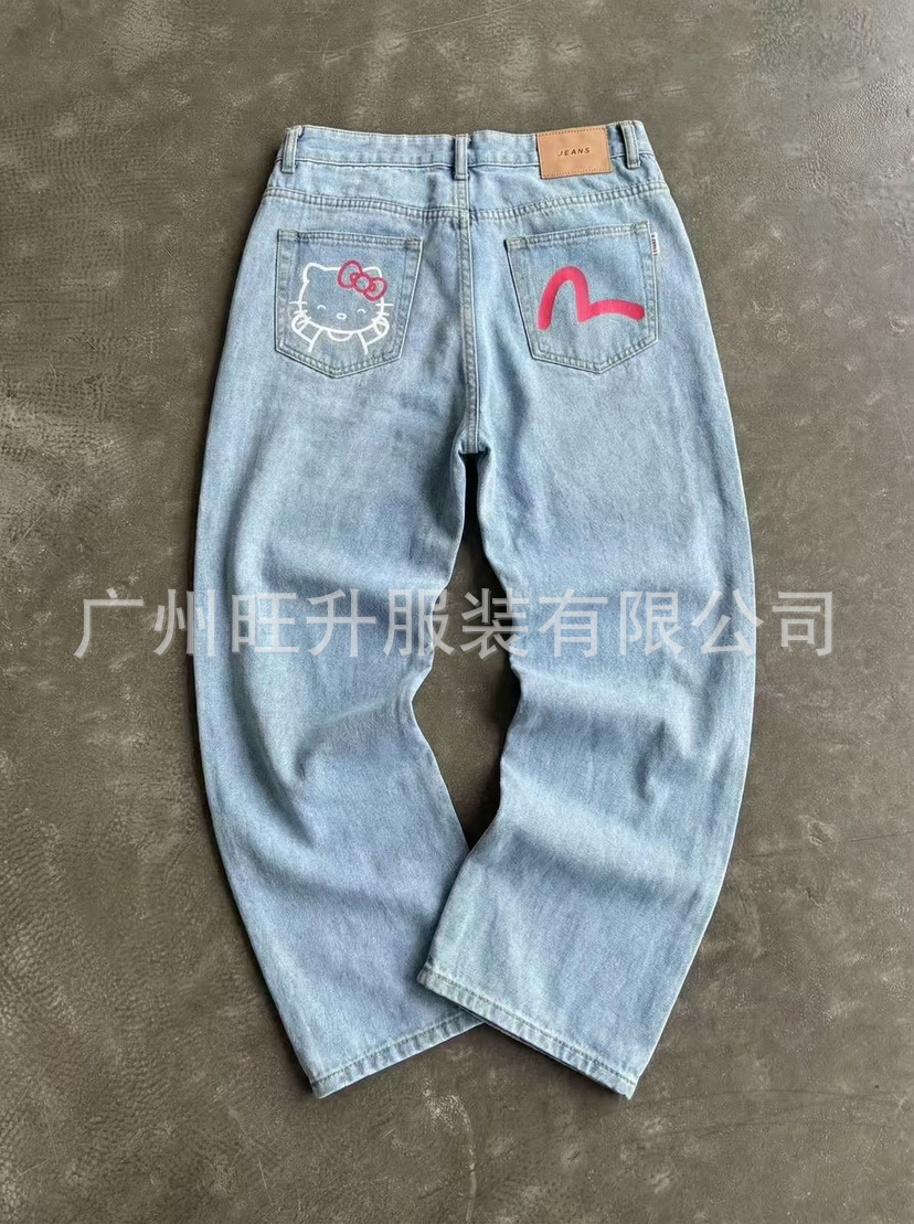 Джинсы свободного кроя с принтом Hello Kitty, трендовые в американском хип-хопе, 2026 год
