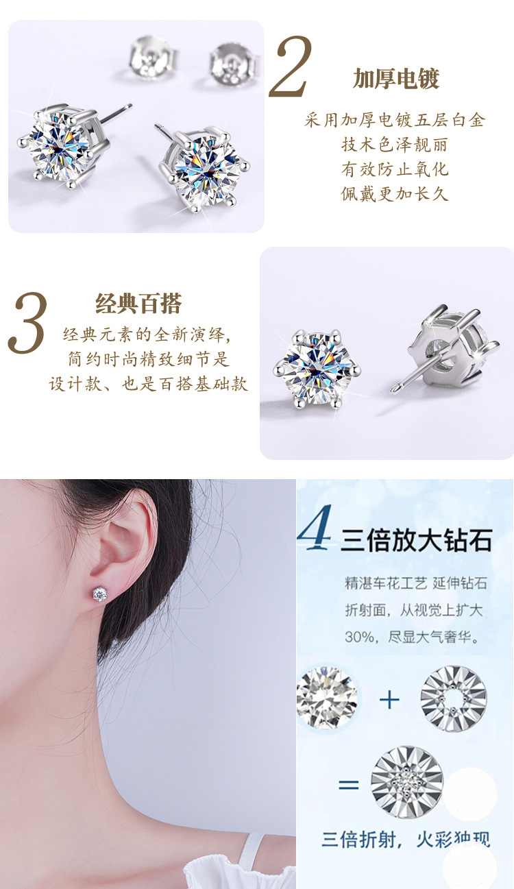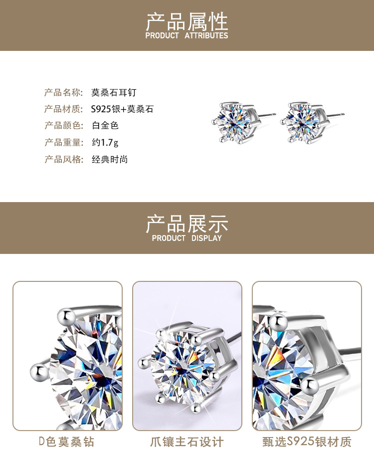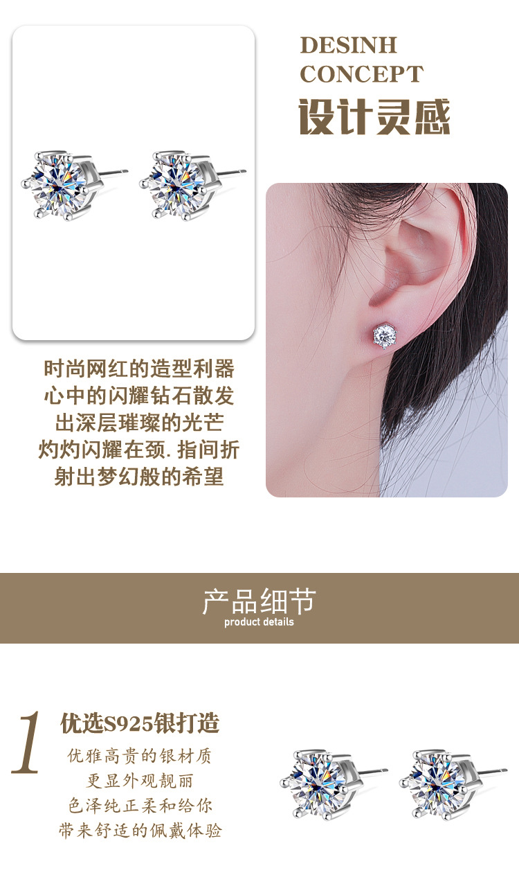 Серьги с шестью когтями из стерлингового серебра 925 пробы с бриллиантами Mosan, 1 карат, элегантный простой подарок из муассанита, ювелирные изделия для ушей, Прямая поставка