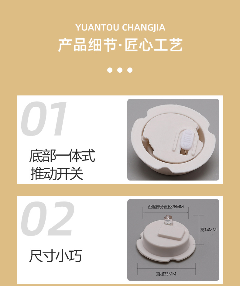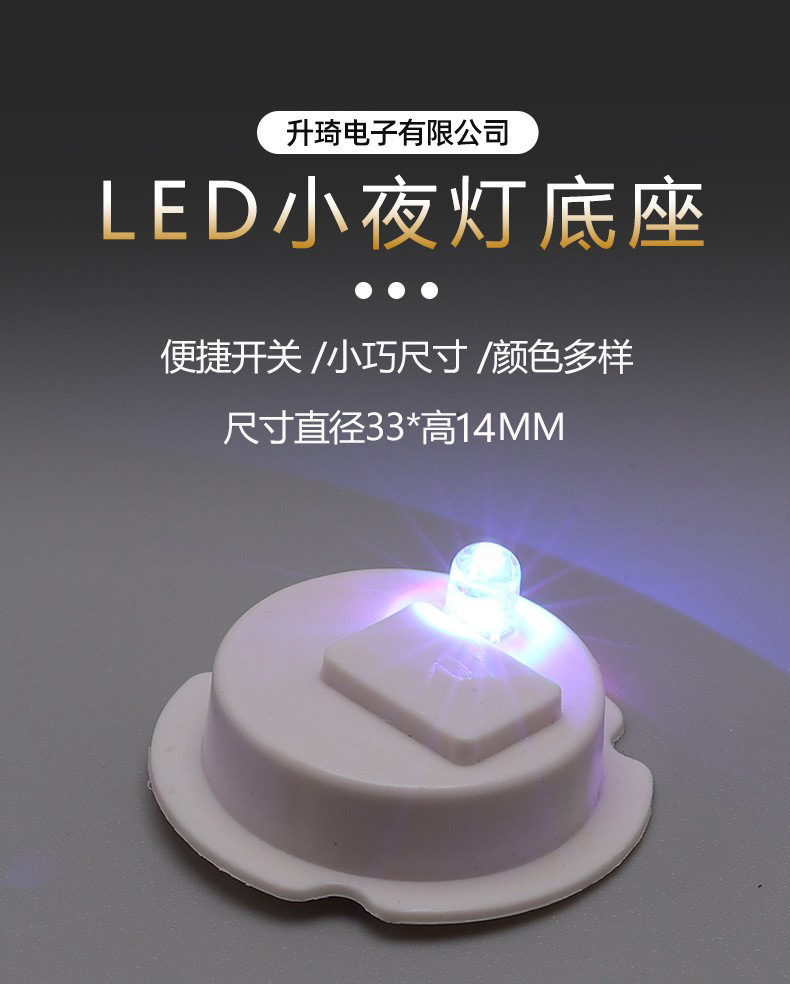 这款闪灯底座底部直径33mm,凸起圆形部分直径26mm,底部拨动开关。灯颜色有红蓝双闪、暖白、亮白、七彩灯,也可以按照客人要求订做别的颜色灯,具体价格请咨询店小二。