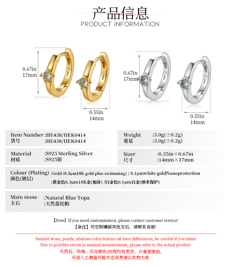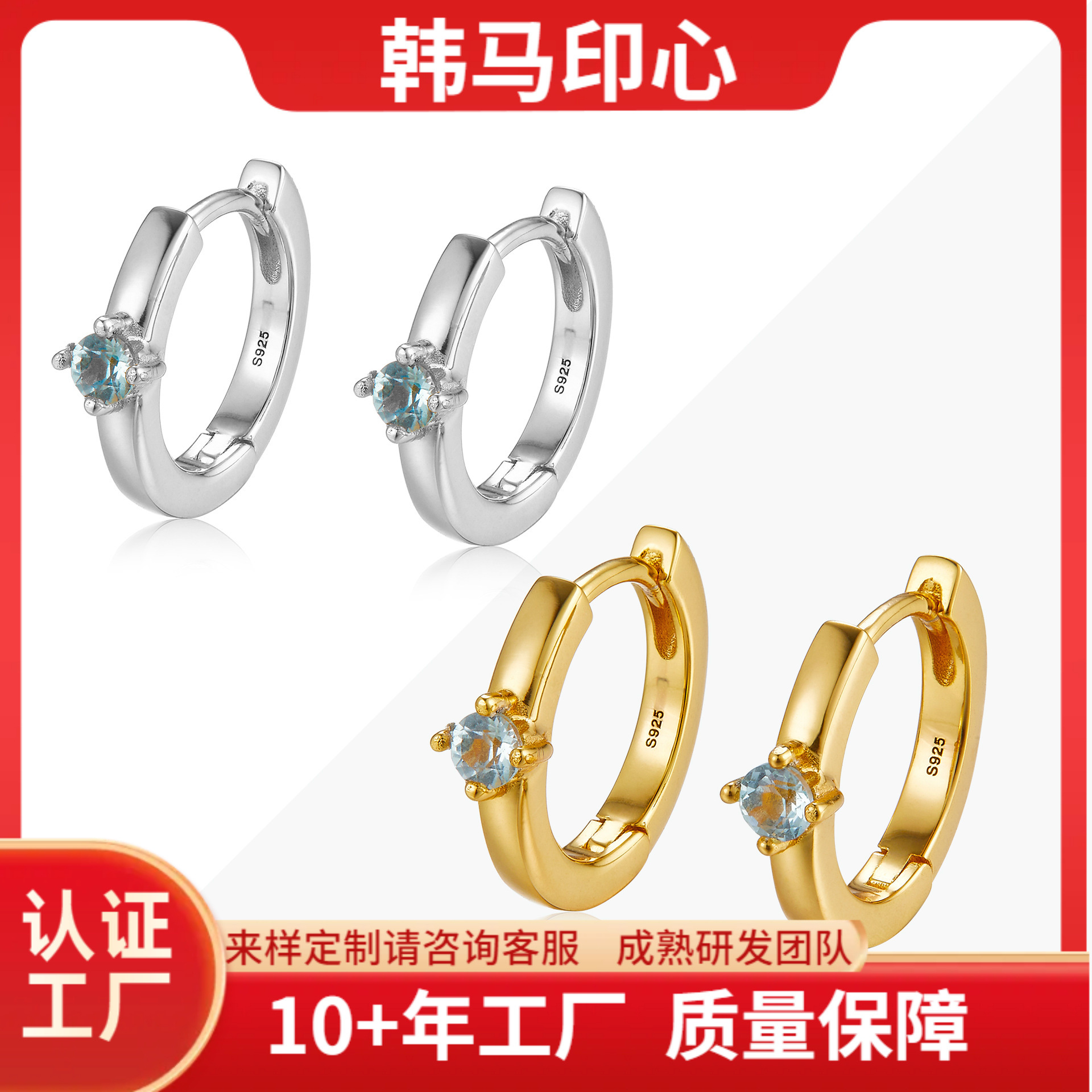 ● Хань Ма Инь Синь ● Серебряные серьги-кольца S925 с топазом, простые и универсальные для женщин, повседневный нишевый дизайн, трансграничные серьги