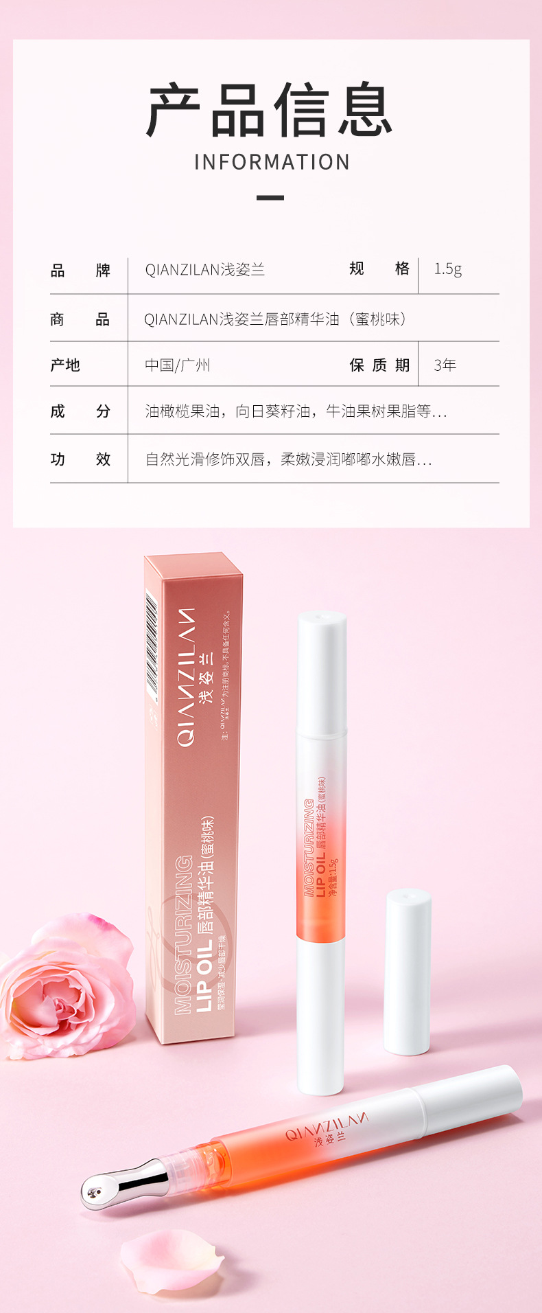Madeline Lip Увлажняющее эссенционное масло 1,5 г; Масло-эссенция для губ Qianzilan (аромат персика) 1,5 г