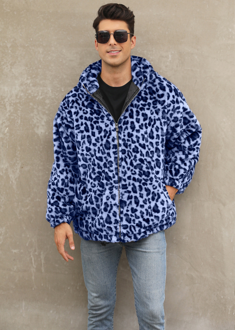 F0836 трансграничный взрыв мужской осень-зима теплая плюшевая леопардовая куртка с имитацией меха куртка с капюшоном
