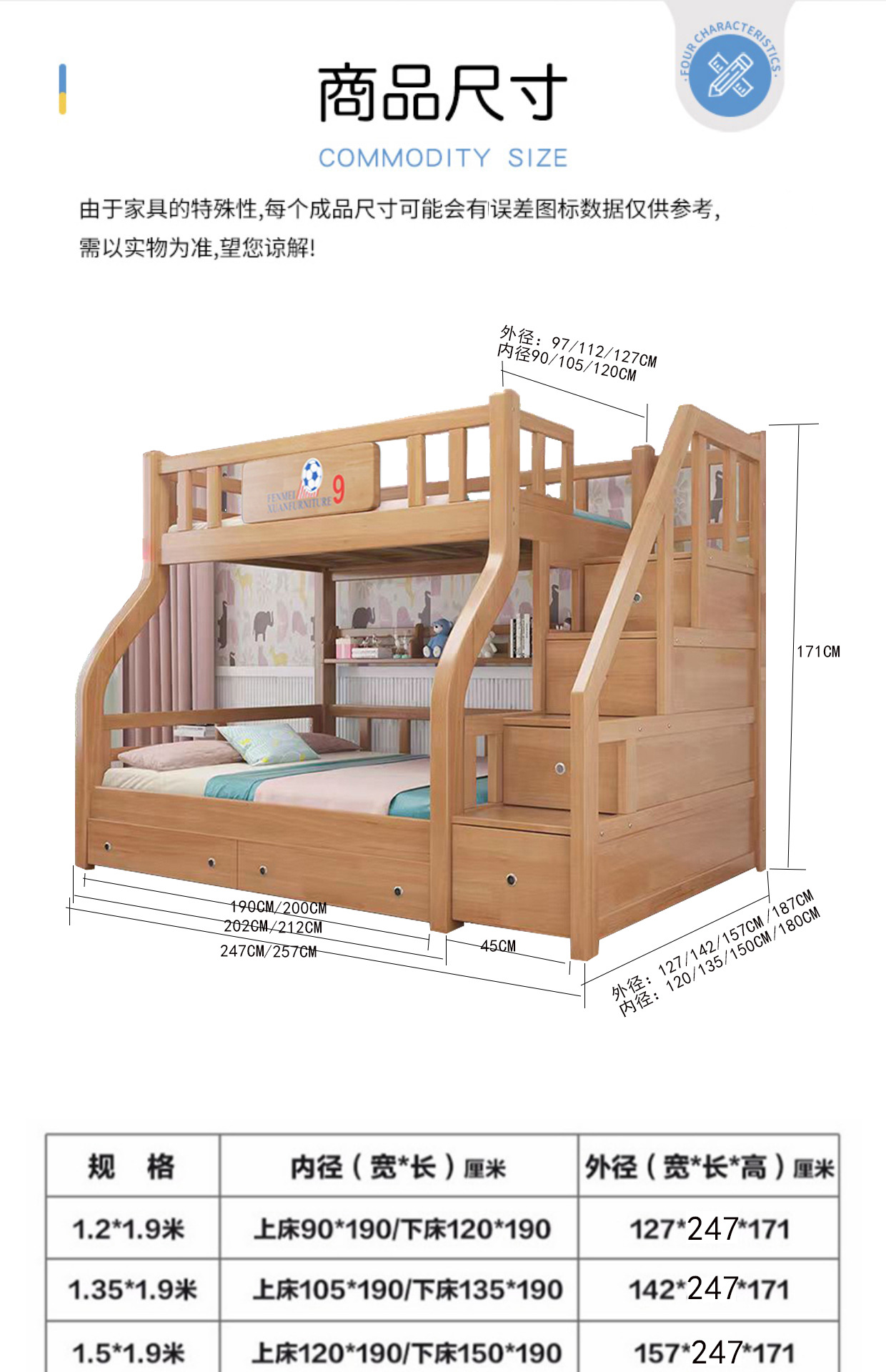 Нижняя койка 1.2m Верхняя койка 0.9m X 1.9m (внутренний диаметр); Нижняя койка 1.35m Верхняя койка 1.05m X 1.9m (внутренний диаметр); Нижняя койка 1.5m Верхняя койка 1.2m X 1.9m (внутренний диаметр); Нижняя койка 1.8m Верхняя койка 1.5m X 1.9m (внутренний диаметр); 1,2 м ниже (настраиваемая длина + 150 юаней); 1,35 метра ниже (настраиваемая длина + 150 юаней); 1,5 м ниже (настраиваемая длина + 150 юаней); 1,8 м ниже (настраиваемая длина + 150 юаней)