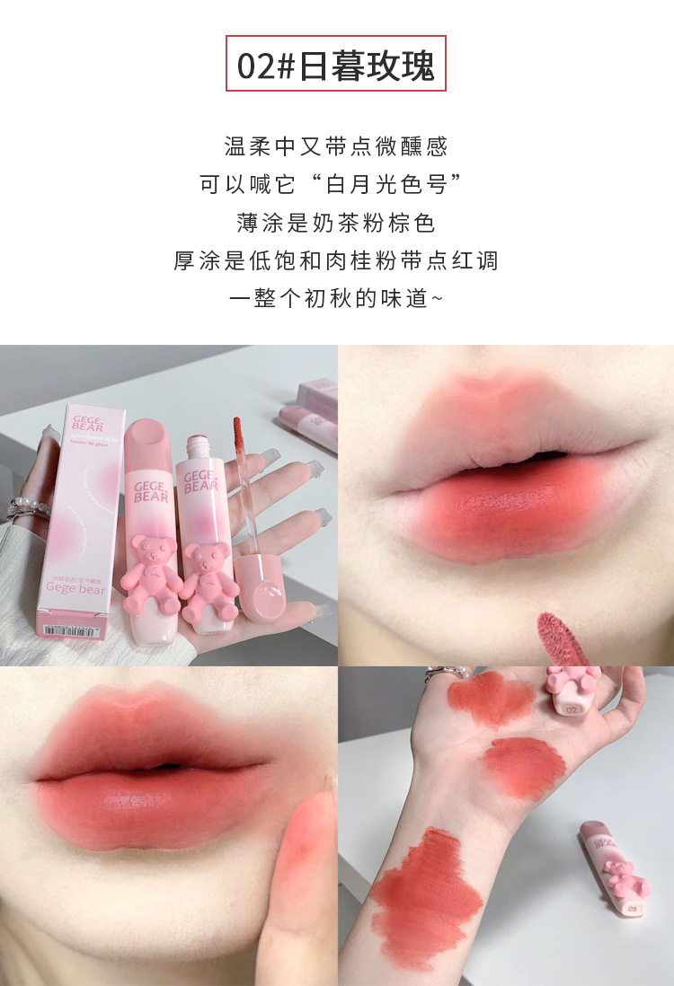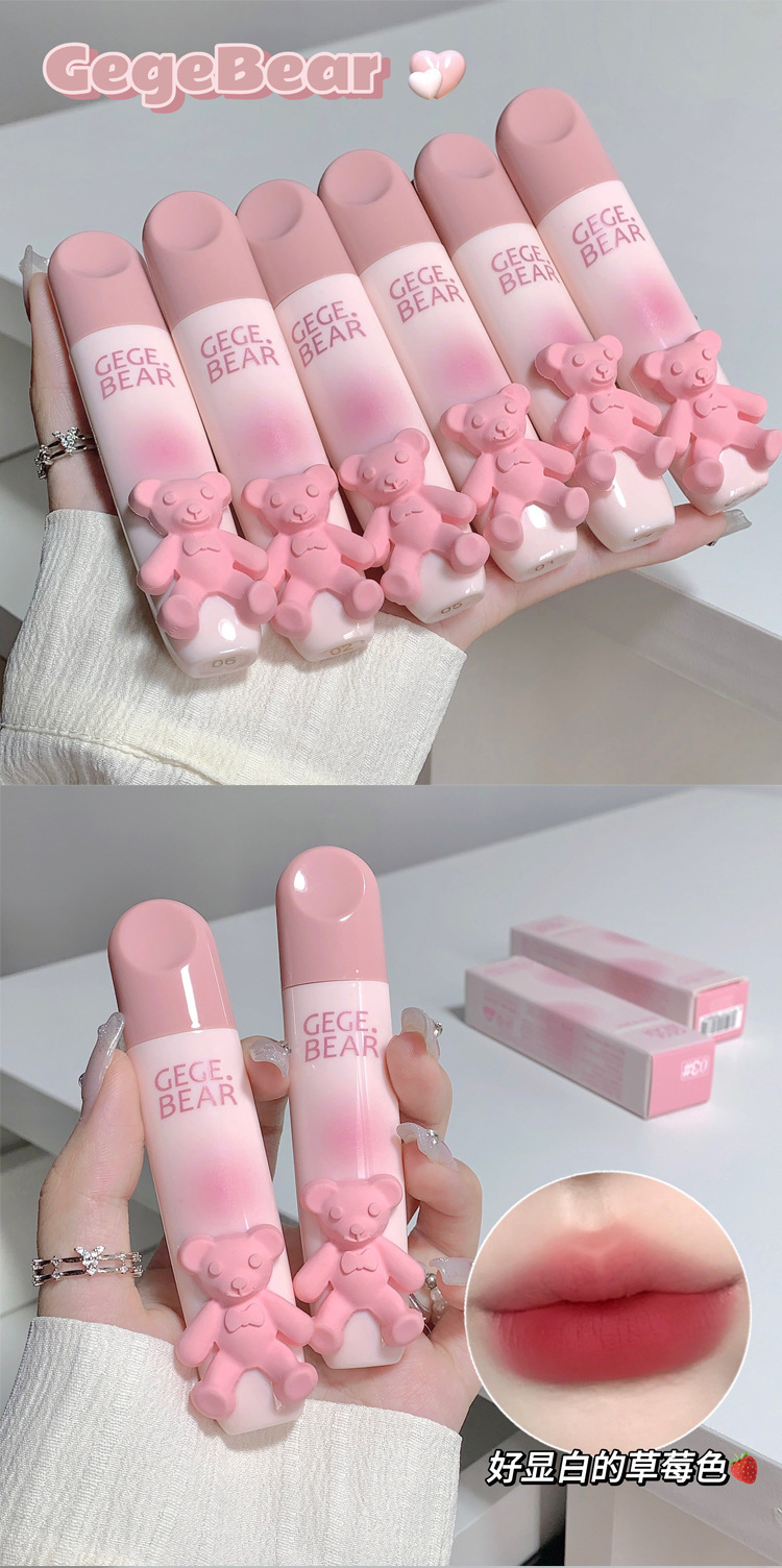 Медведь Геге Медведь Гого нежный блеск глазурь для губ бархат мягкий туман матовый цветопередача белый антипригарный Кубок студенческий паритет