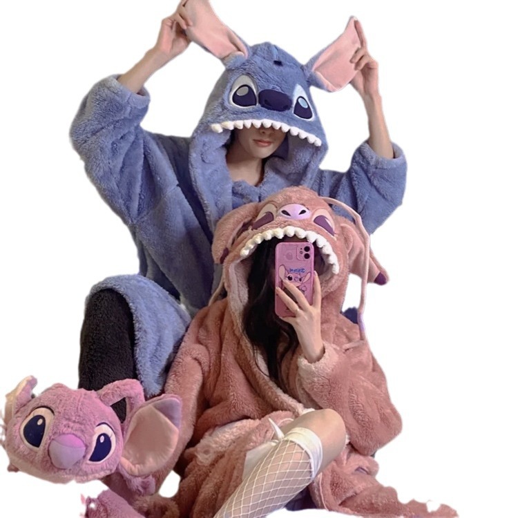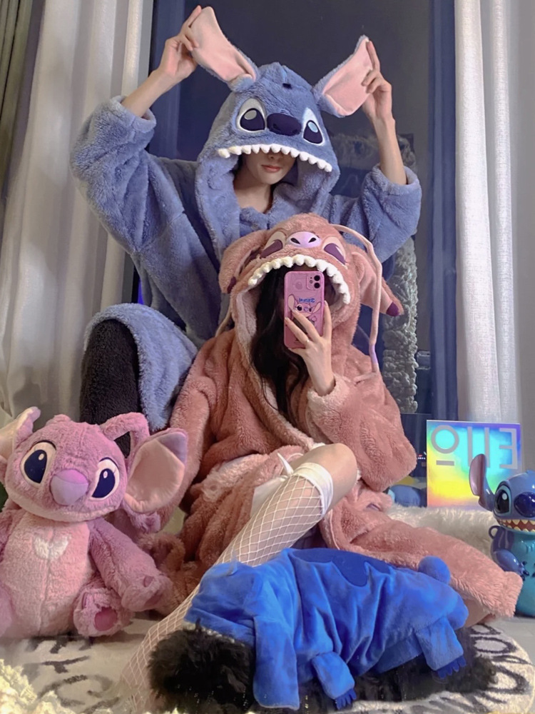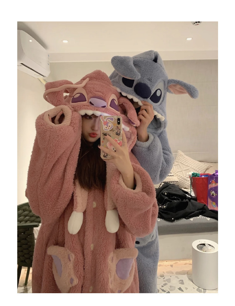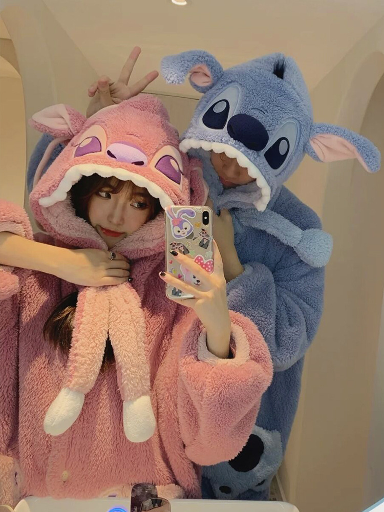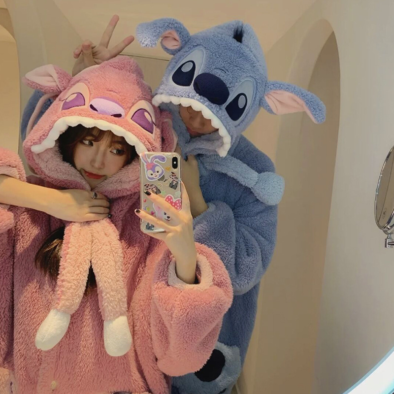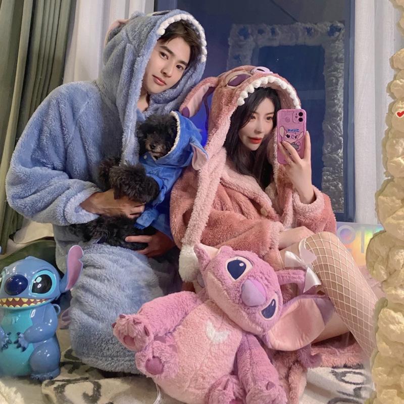 Осенне-зимняя Пижама для пар Stitch, женская зимняя Домашняя одежда из кораллового флиса, Мужская Утепленная ночная рубашка, фланелевый костюм