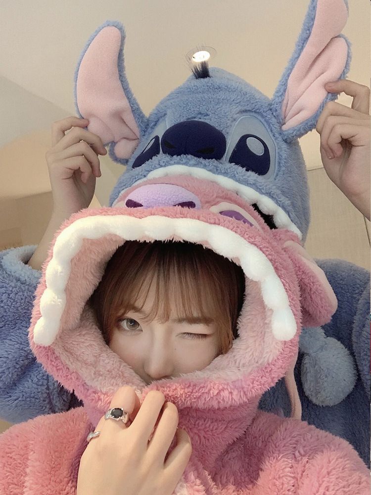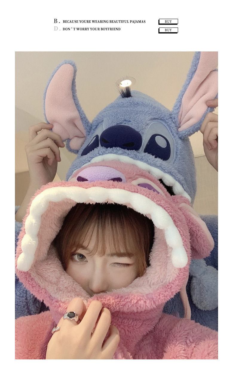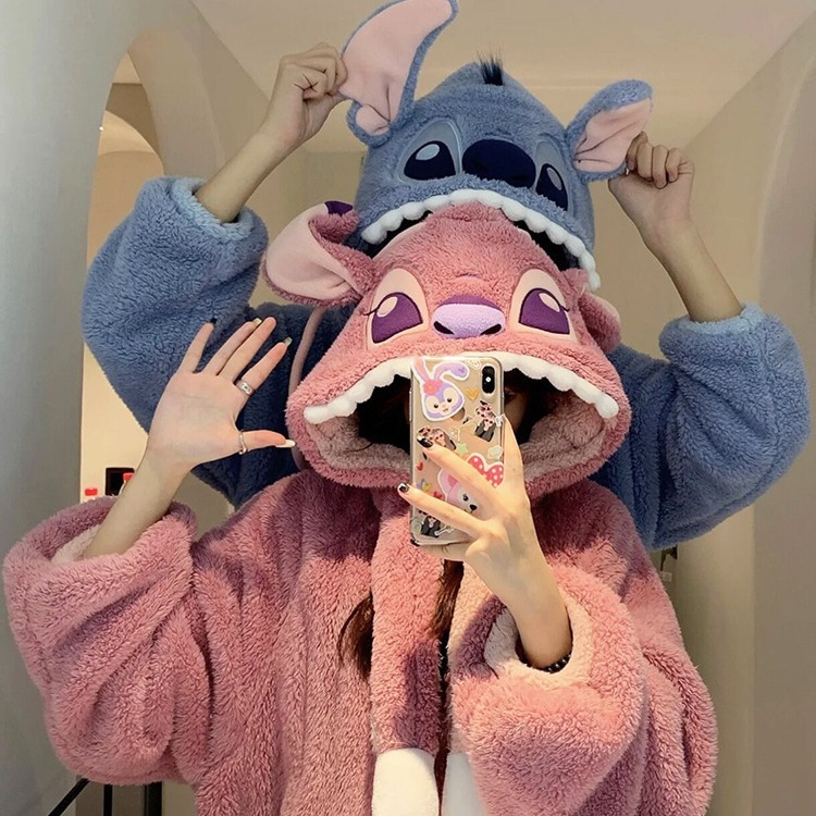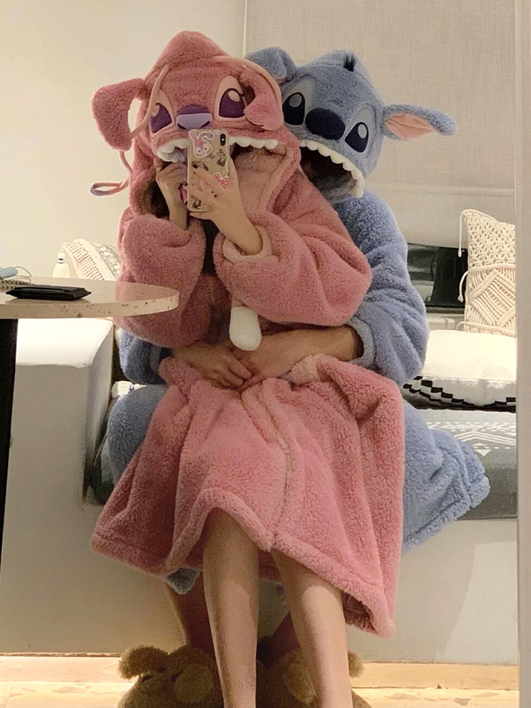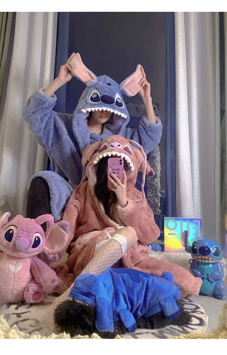 Осенне-зимняя Пижама для пар Stitch, женская зимняя Домашняя одежда из кораллового флиса, Мужская Утепленная ночная рубашка, фланелевый костюм