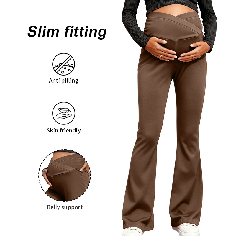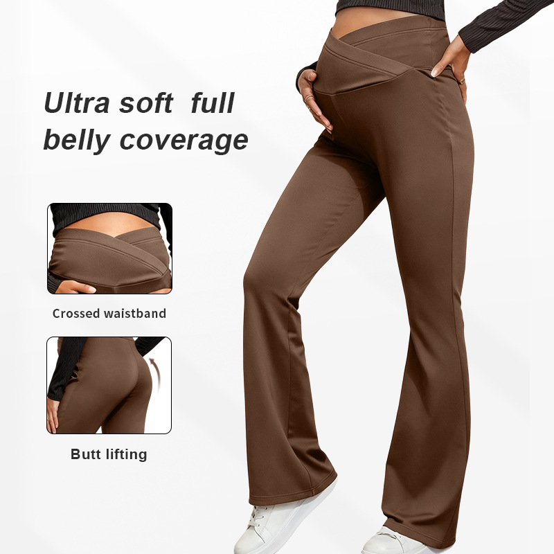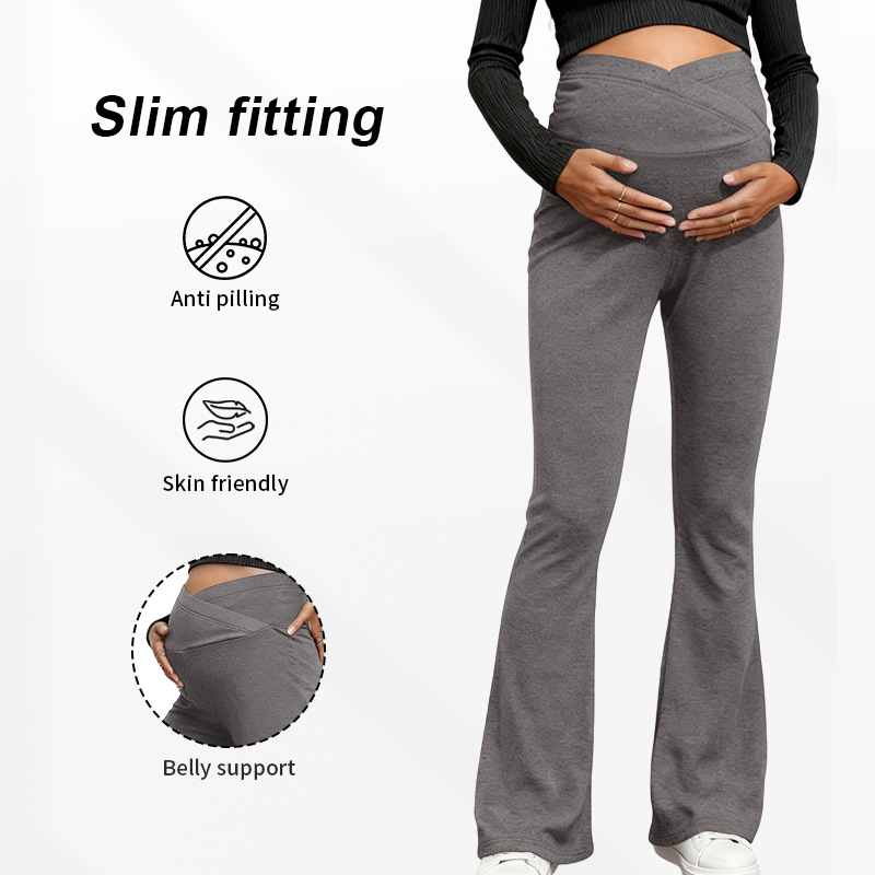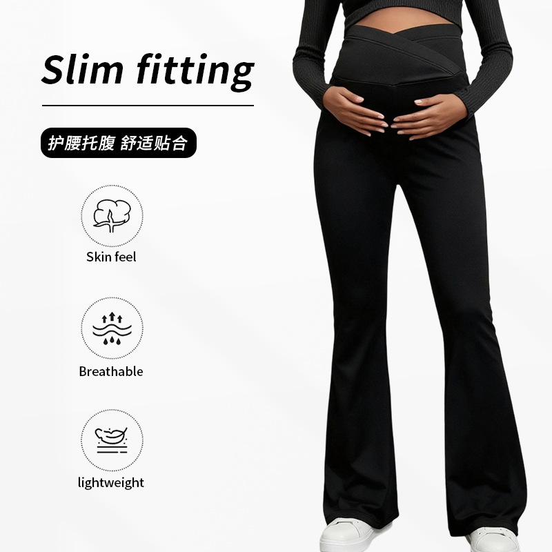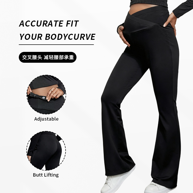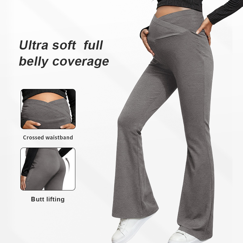 Осенние и зимние брюки для йоги для беременных с перекрестной поддержкой живота, облегающие расклешенные брюки с высокой талией, леггинсы для беременных в европейском и американском стиле.