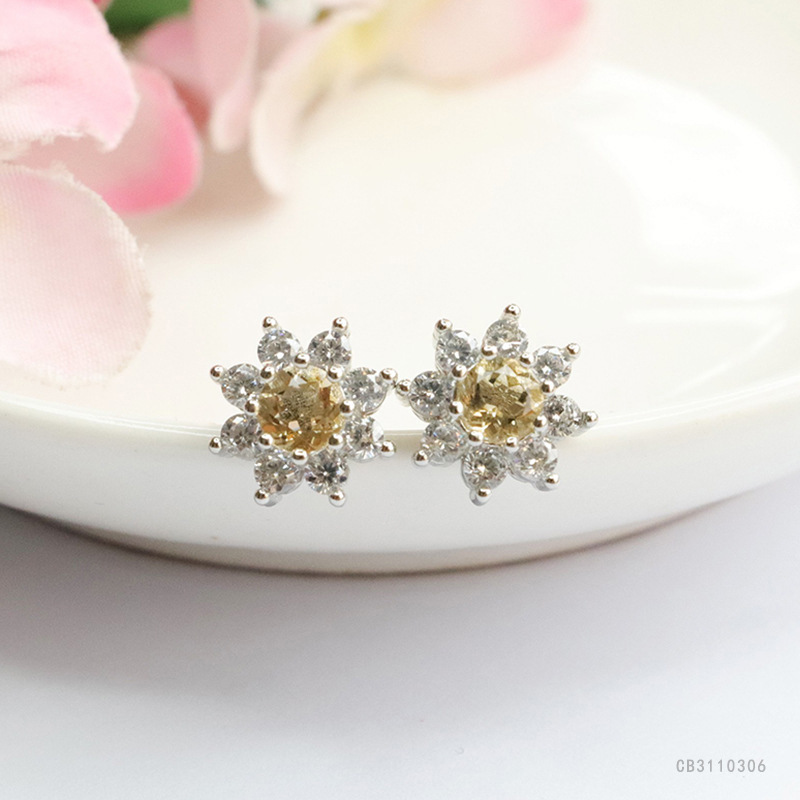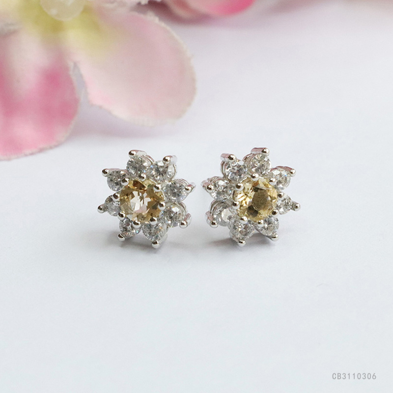 Цитрин Полный алмаз S925 серебряные серьги иглы (CB3110306)