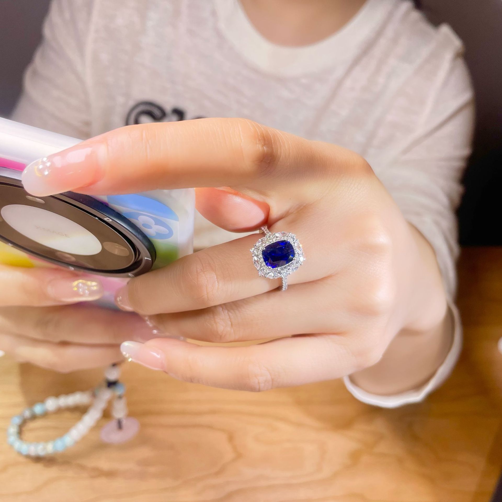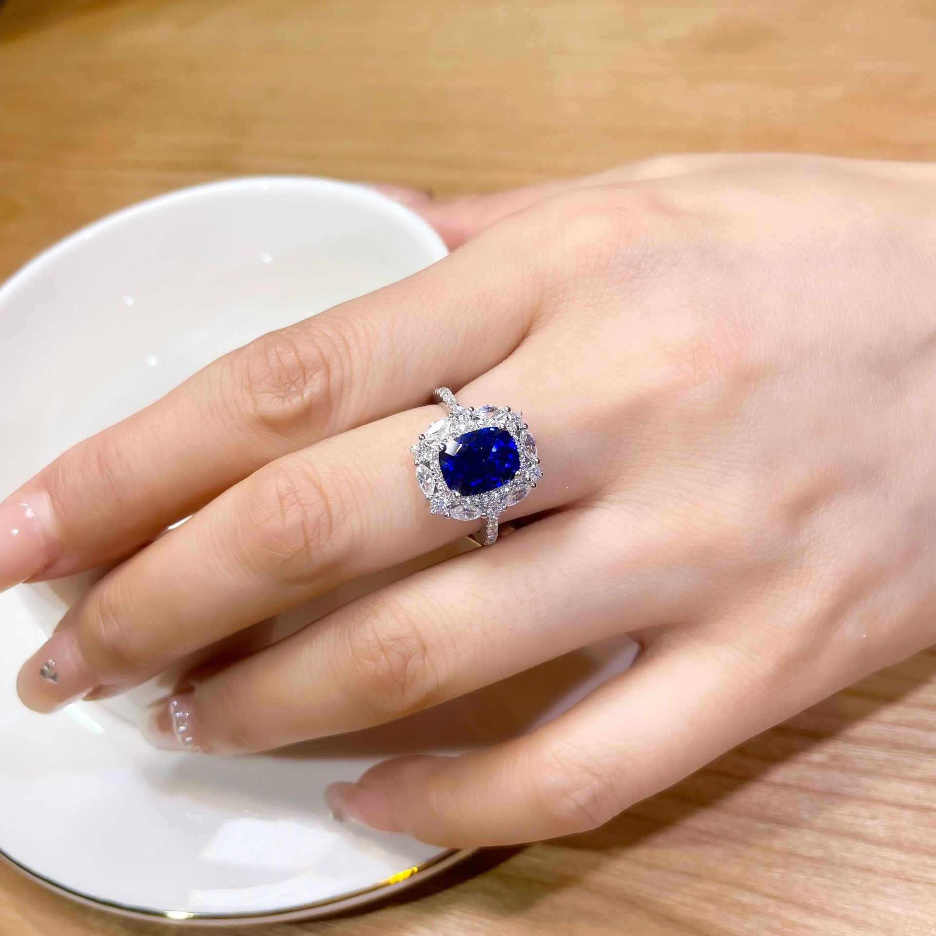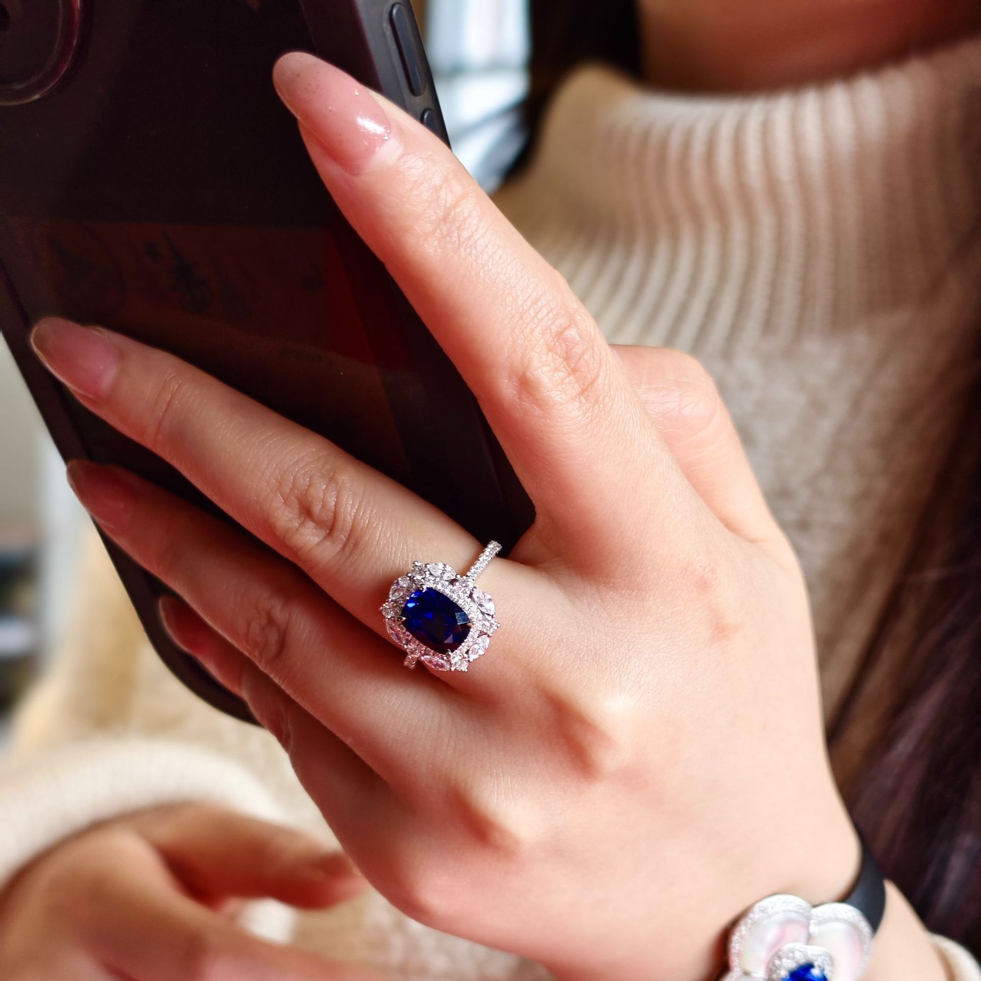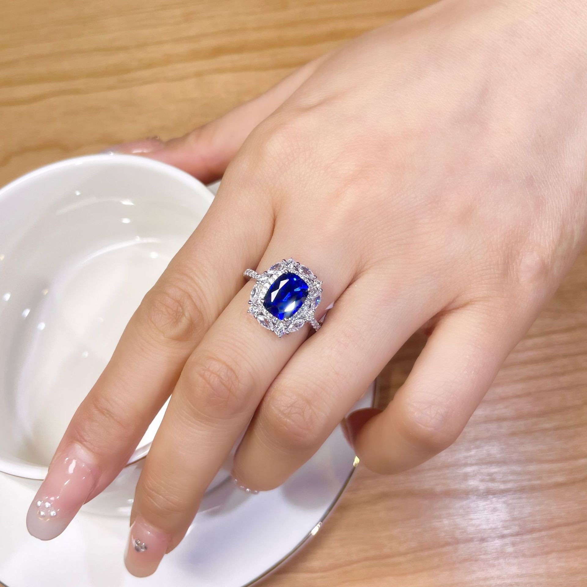 Кольцо из серебра S925 с сапфиром королевского синего цвета 3 карата, полностью инкрустированное бриллиантами, подарочное, новая модель 2025 года