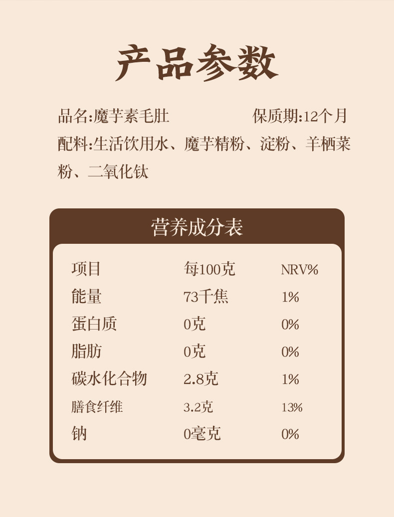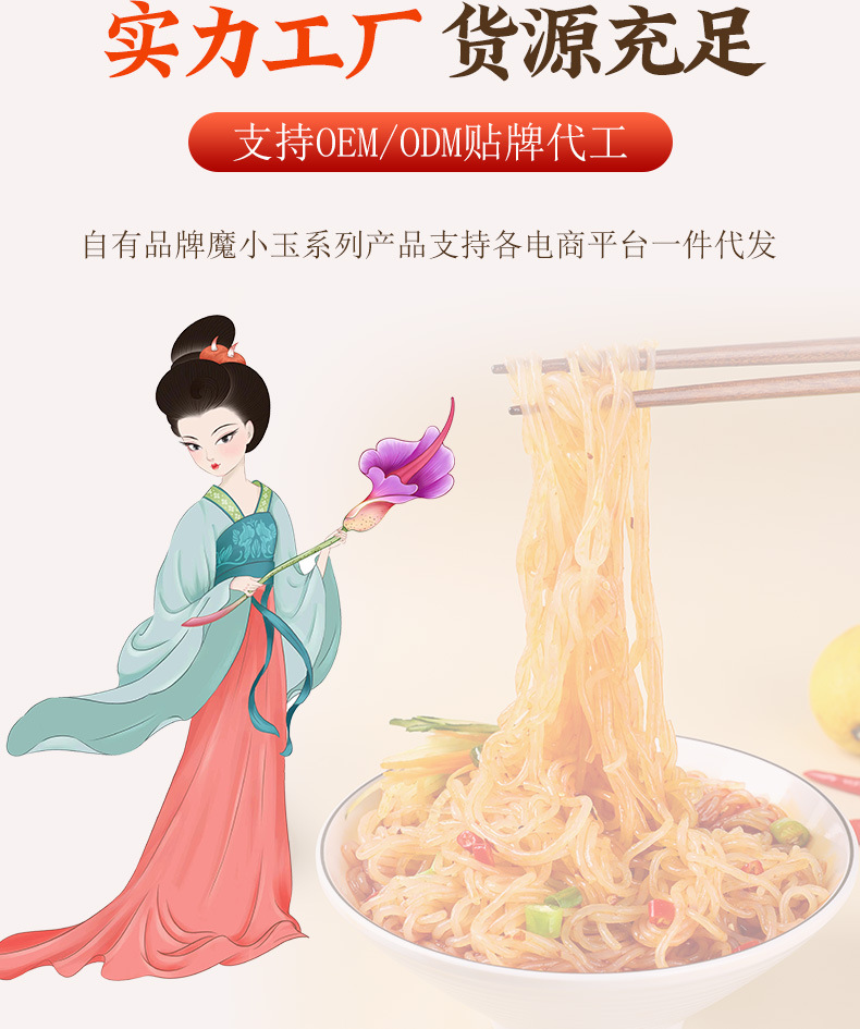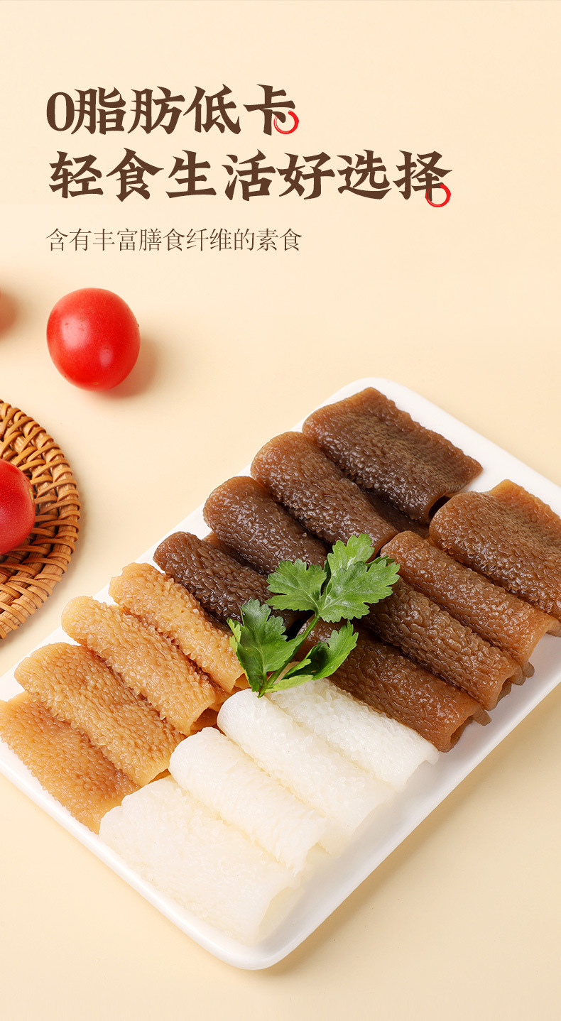 Обычный рубчик (белый, 500 г/пакет); Су Мао Ду (черный, 500 г/пакет); Су Мао Ду (белый, 2 кг/пакет); Су Мао Ду (черный, 2 кг/пакет); Однотонная лазанья рубец (белый, 500 г/пакет); Конжаковая мука (260 г/пакет); Konjac холодная кожа (260 г/пакет); Порошок Konjac Hotpot Сычуань (260 г/пакет); Рис конняку (260 г/пакет)