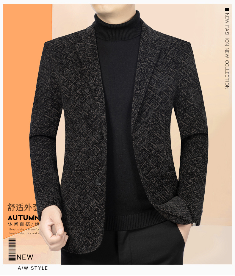 Мужской пиджак на флисовой подкладке, утепленный, для мужчин среднего возраста, осенне-зимняя коллекция 2025, высококачественный повседневный костюм для папы, мужская верхняя одежда