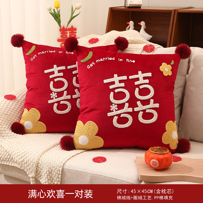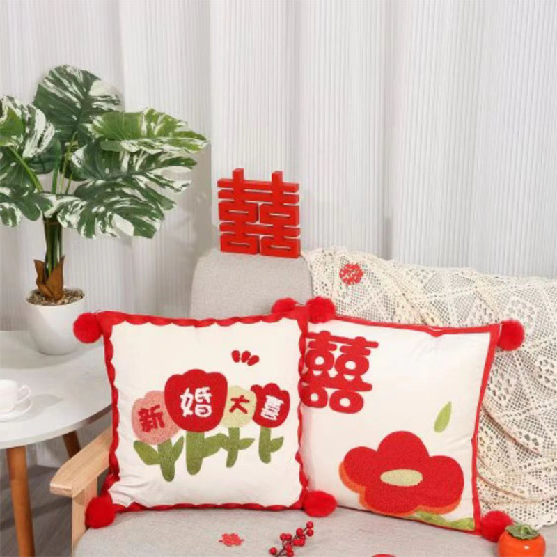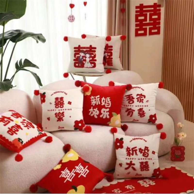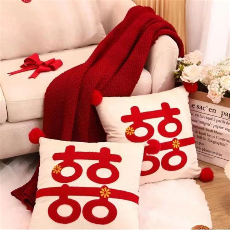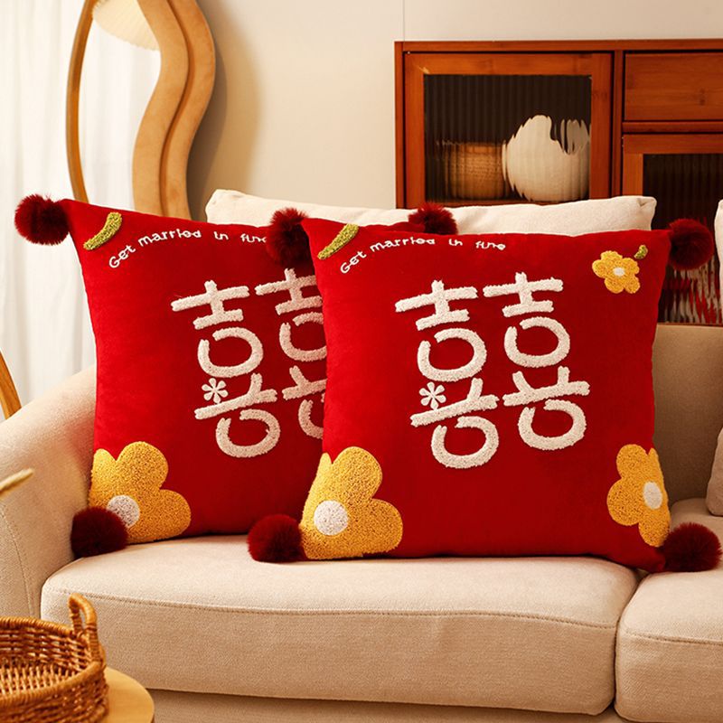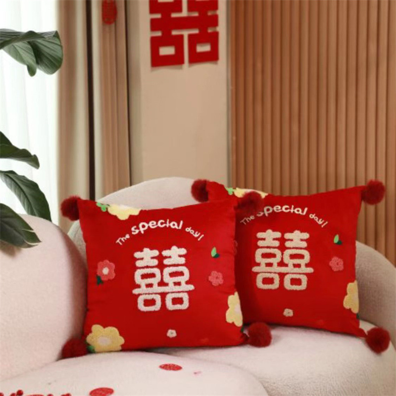 Свадебная Подушка пара Праздничная красная нажимная подушка для кровати гостиная диван Свадебная Подушка свадебное украшение свадебной комнаты