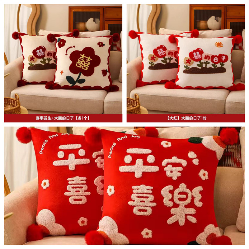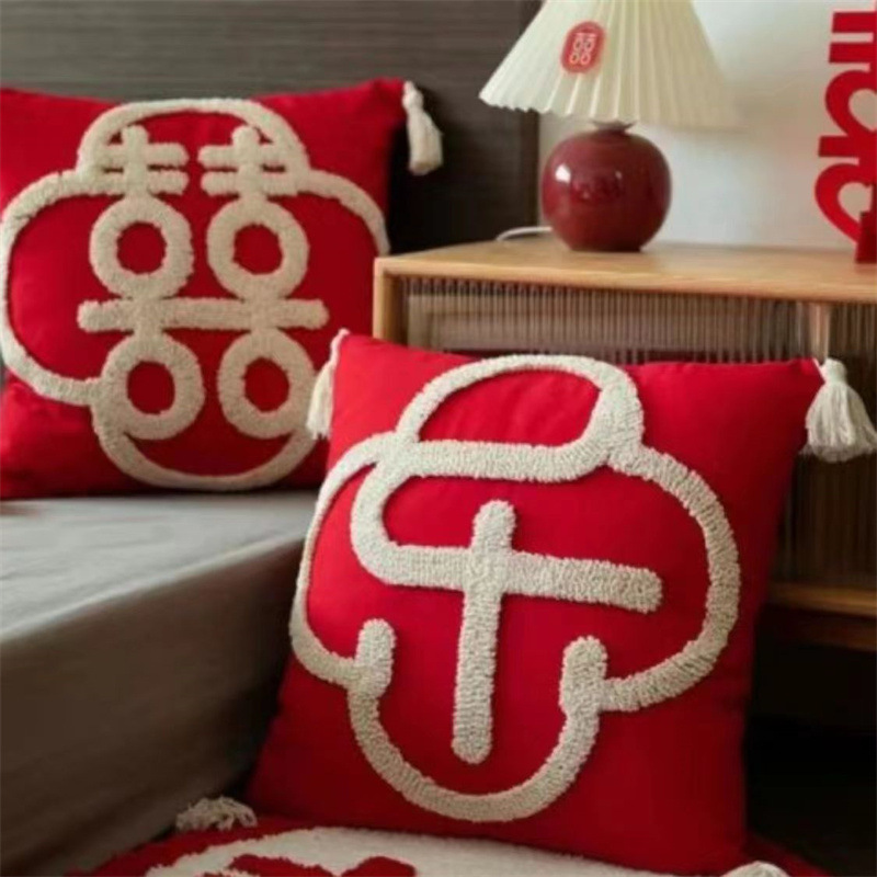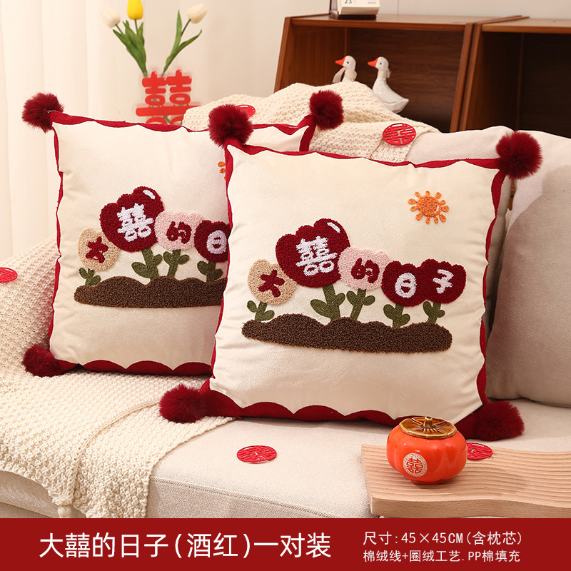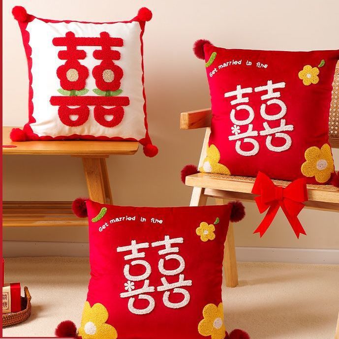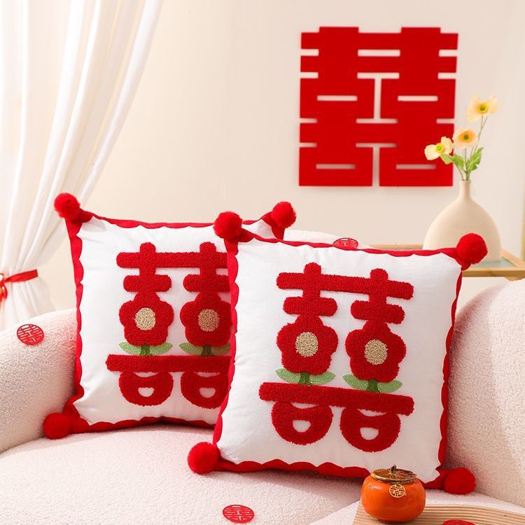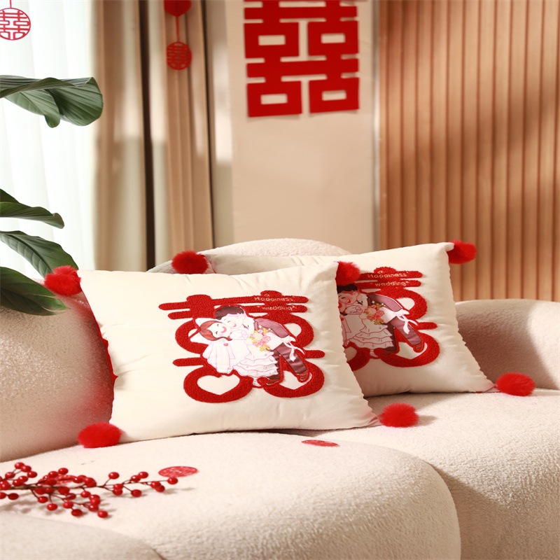 Свадебная Подушка пара Праздничная красная нажимная подушка для кровати гостиная диван Свадебная Подушка свадебное украшение свадебной комнаты